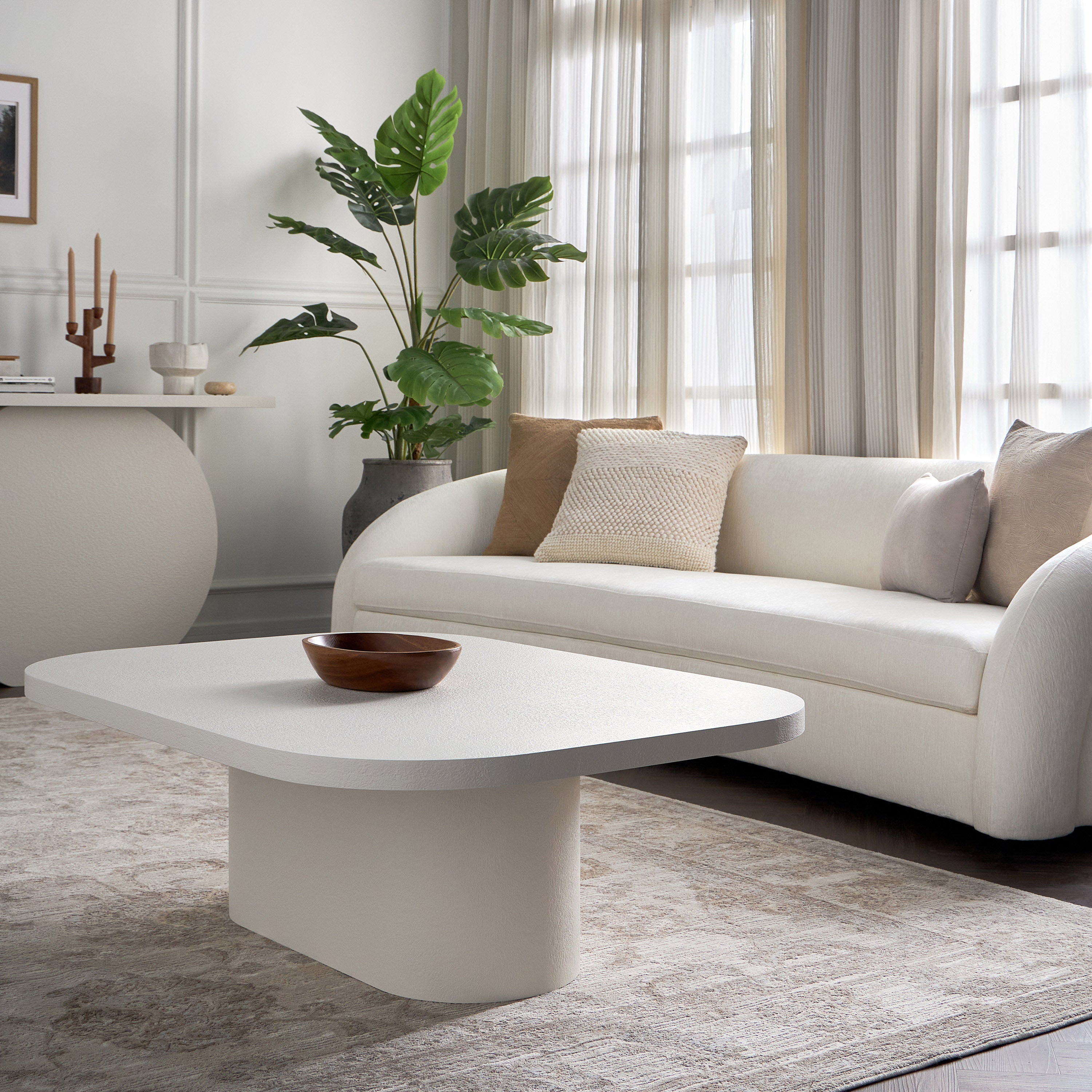 Experience the epitome of modern design with this coffee table. Featuring a sleek, minimalist form and a textured finish, this coffee table adds a touch of understated elegance to any living space. Constructed from durable material, it promises longevity and sturdiness. Its spacious tabletop provides ample surface area for your essentials, making it a functional addition to your home.