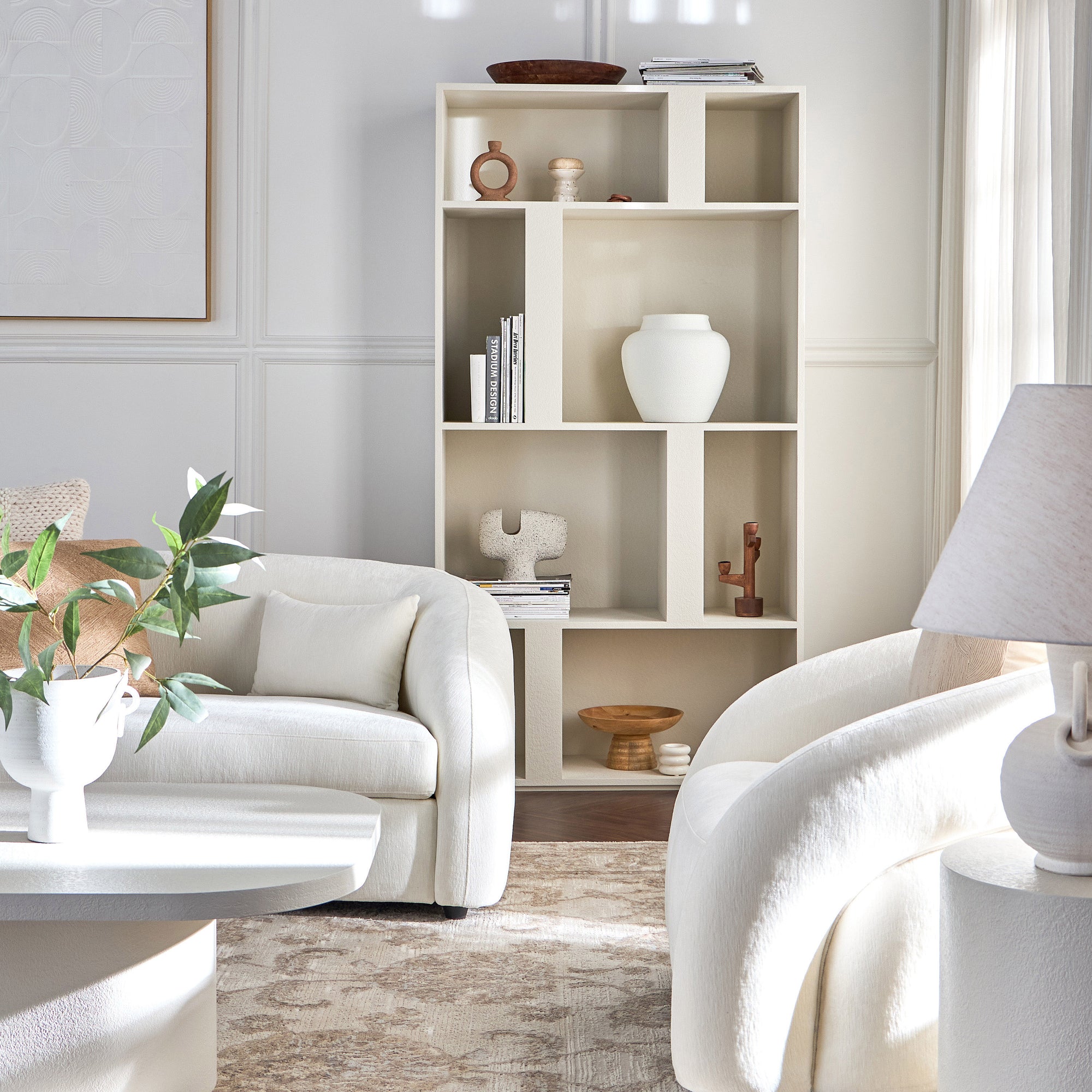 This display rack is a striking and functional piece of furniture designed to elevate any living space. Crafted from high-quality materials, this display rack ensures durability and a modern aesthetic. Featuring a unique arrangement of compartments in various shapes and sizes, it offers both visual interest and versatile storage options, making it an ideal addition to any contemporary home.