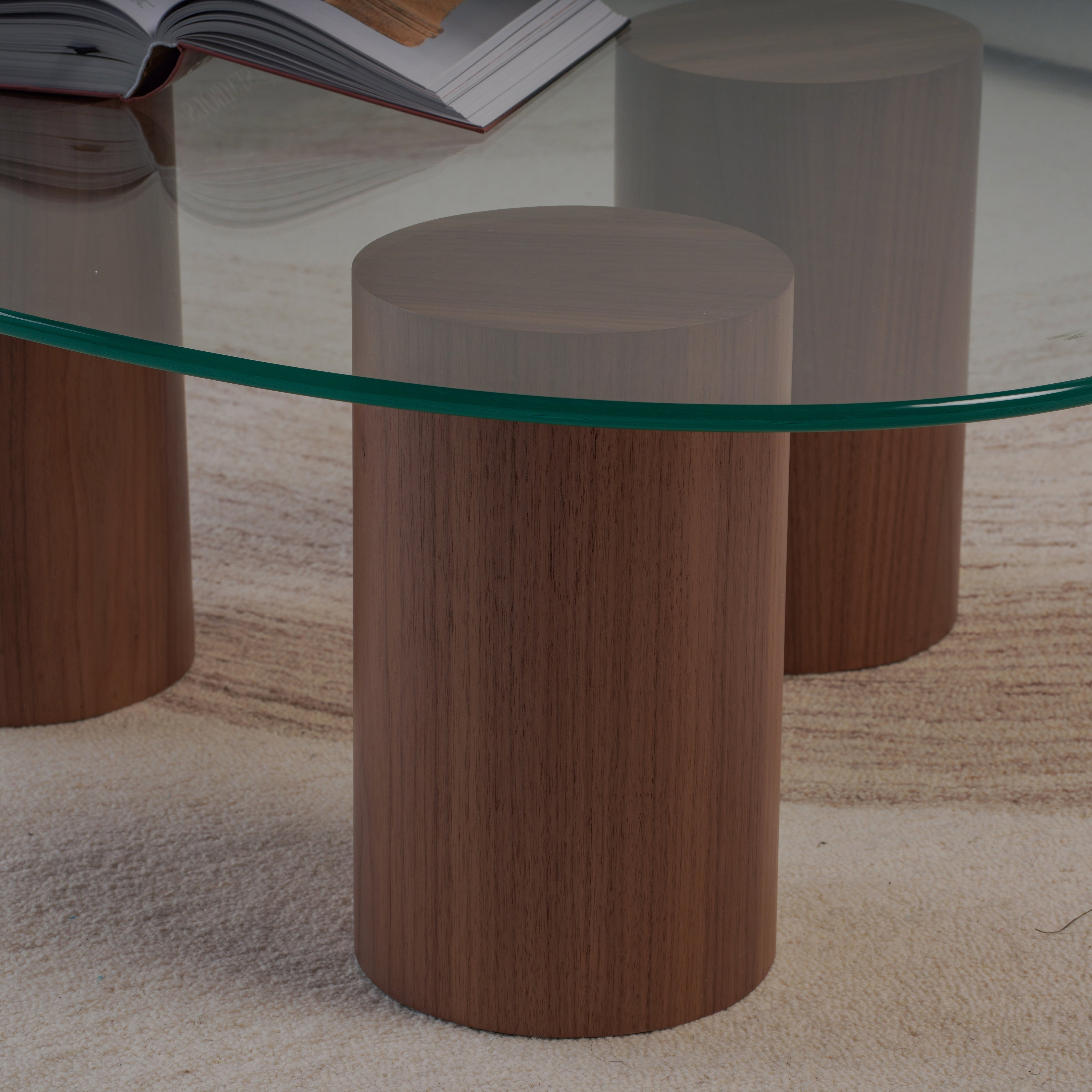Experience the beauty of refined geometry with this circle glass coffee table. Supported by three bold, cylindrical bases in a soft plaster finish, it balances architectural form with minimalist serenity. The organically shaped glass top adds a graceful fluidity, creating an airy visual presence that complements contemporary interiors. Both grounding and elevating, this piece offers a sophisticated blend of function and sculptural design—ideal for curated living spaces.