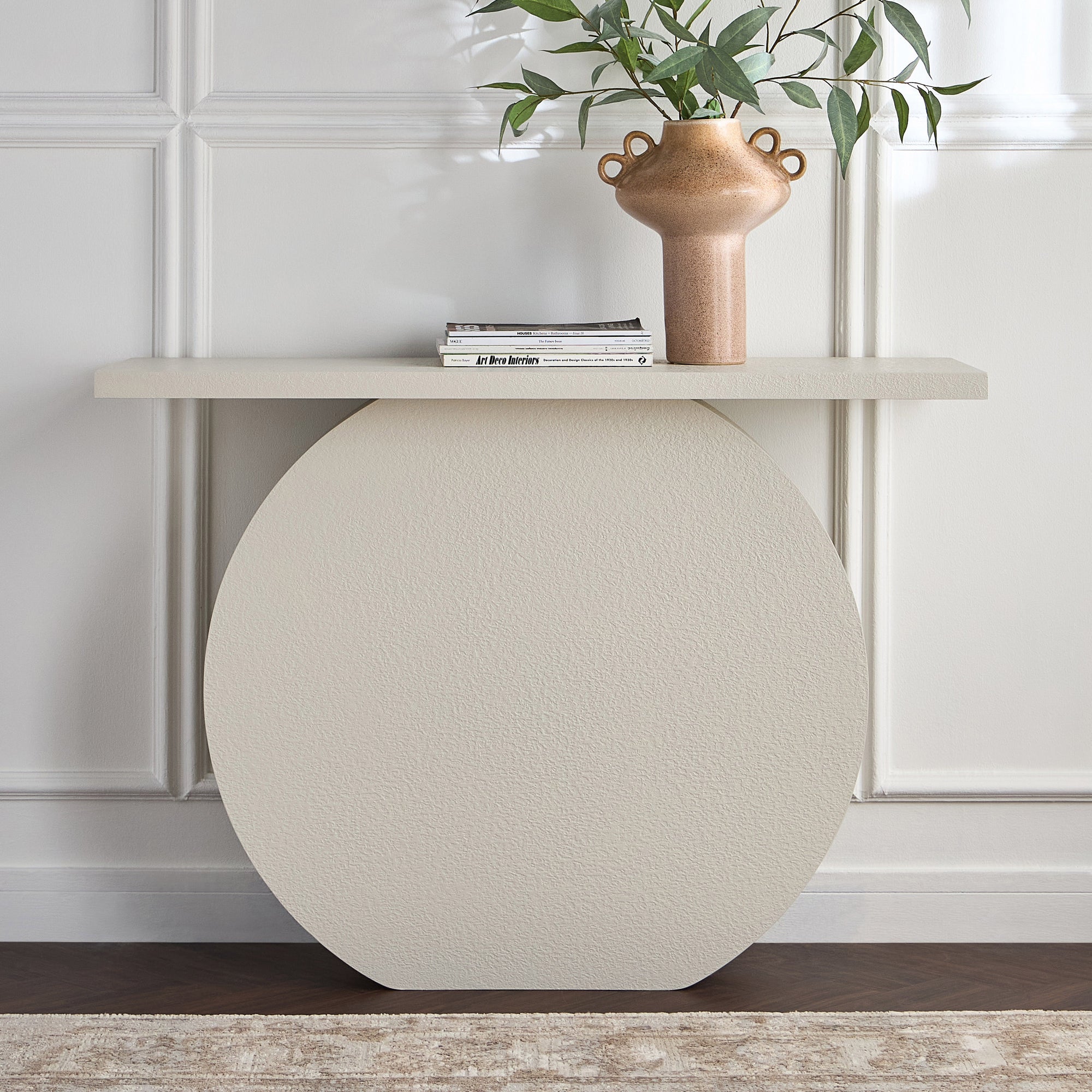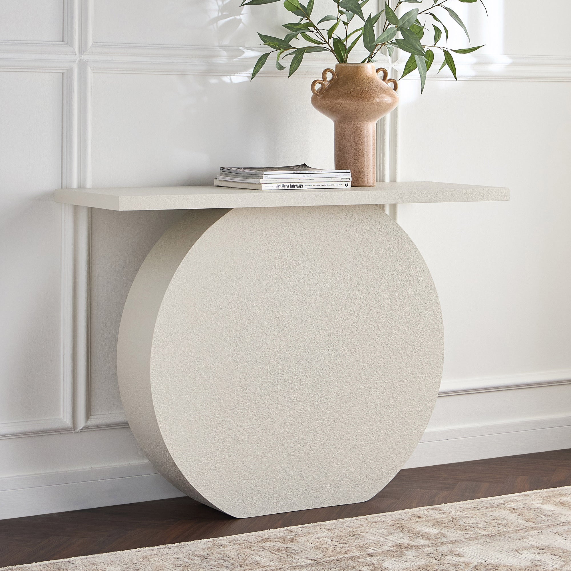 Add a touch of contemporary elegance to your home with this console table. Crafted from high-quality materials, this table features a unique circular base and a textured finish, making it a versatile addition to any hallway or living room.