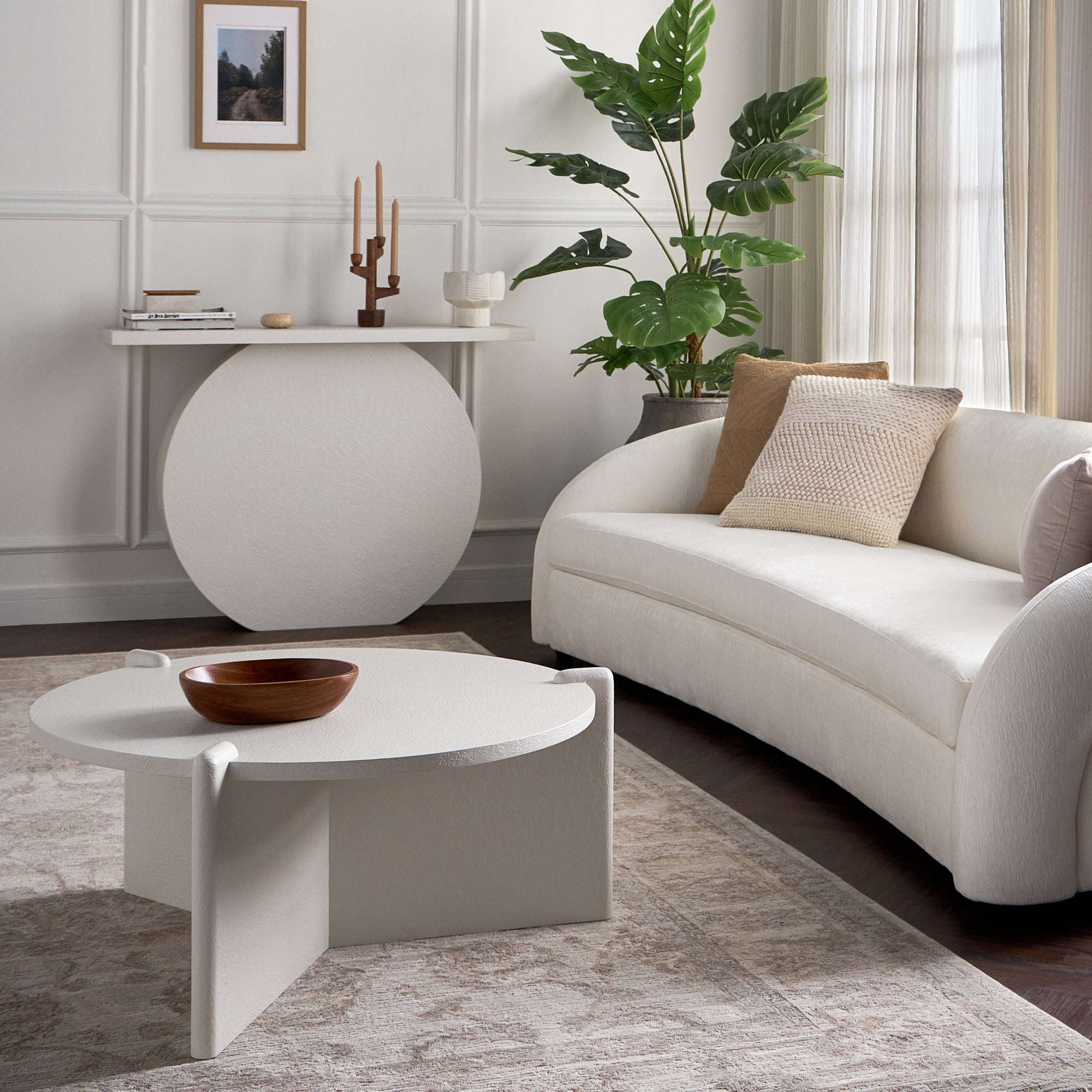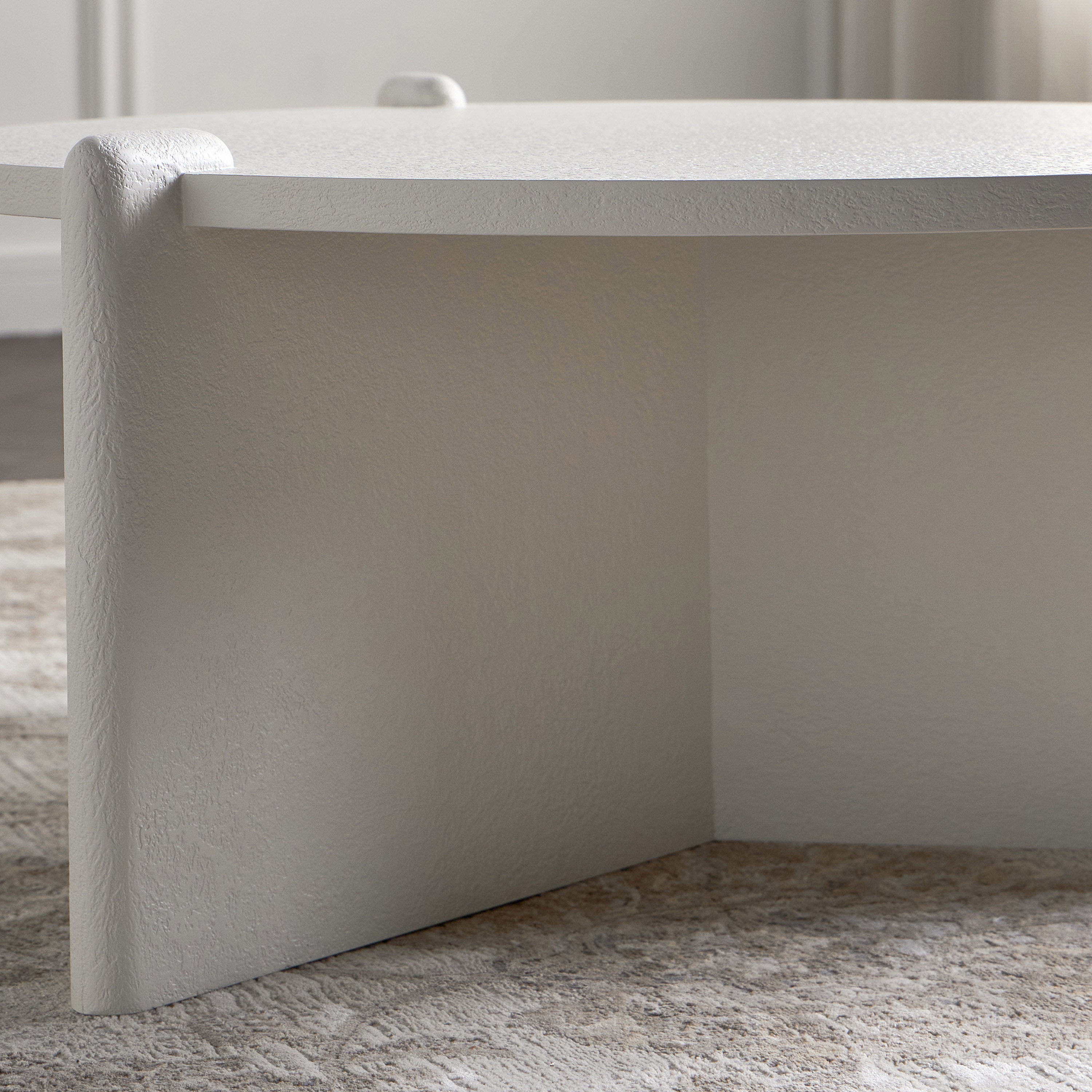 Introduce a new level of sophistication to your living space with this coffee table. Its contemporary design adds a touch of modern elegance to any room. Crafted from superior-quality material, this coffee table showcases a distinctive three-leg structure that ensures exceptional stability and support. Designed for both style and functionality, it serves as a perfect platform to display decorative items, offer refreshments, or enjoy casual get-togethers.