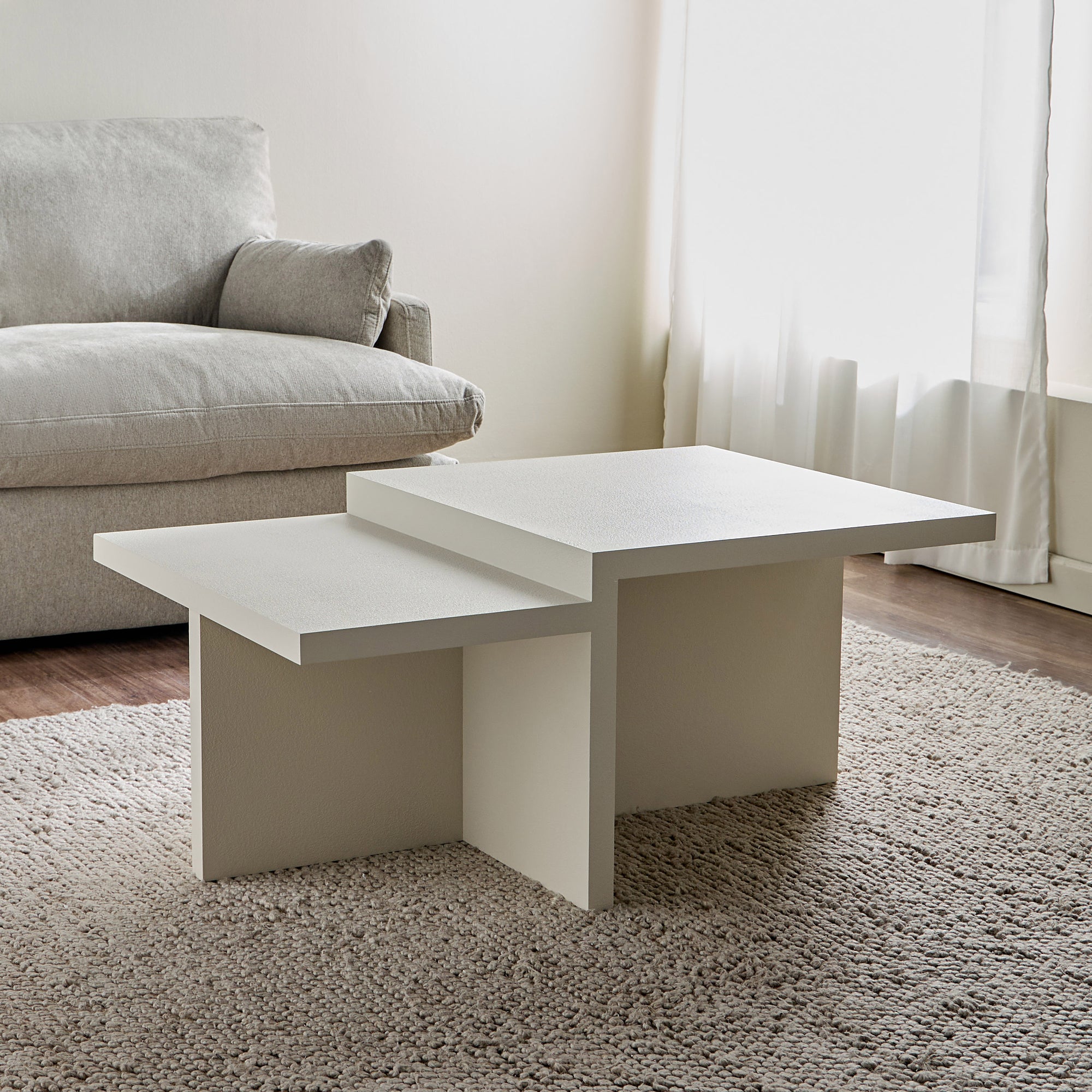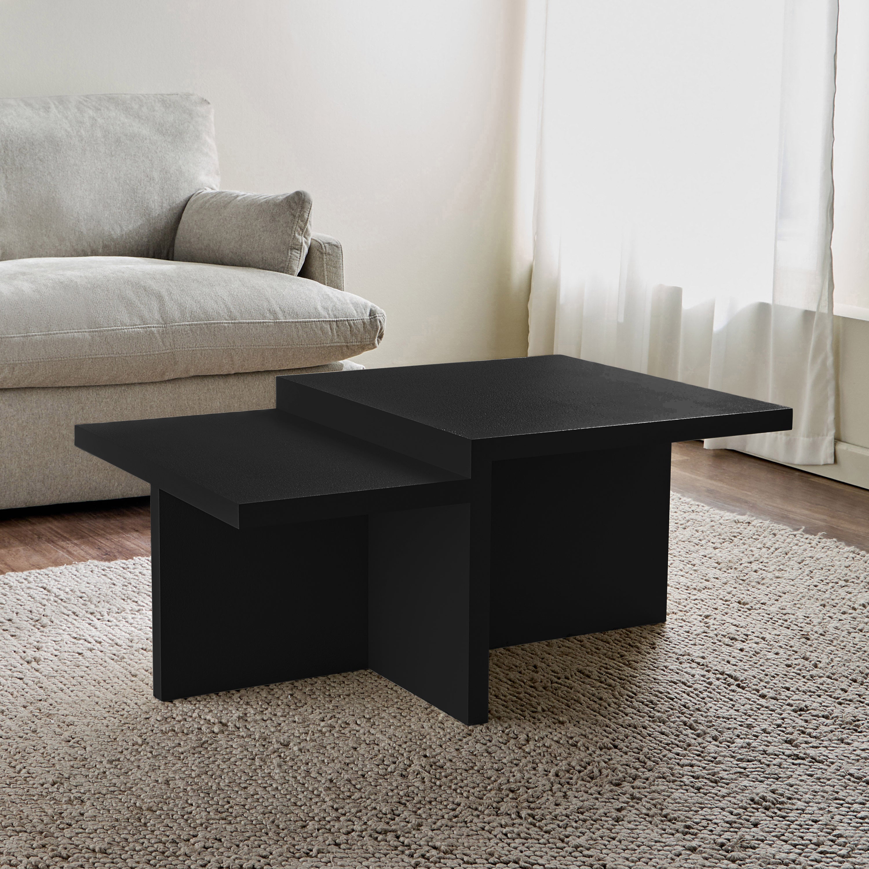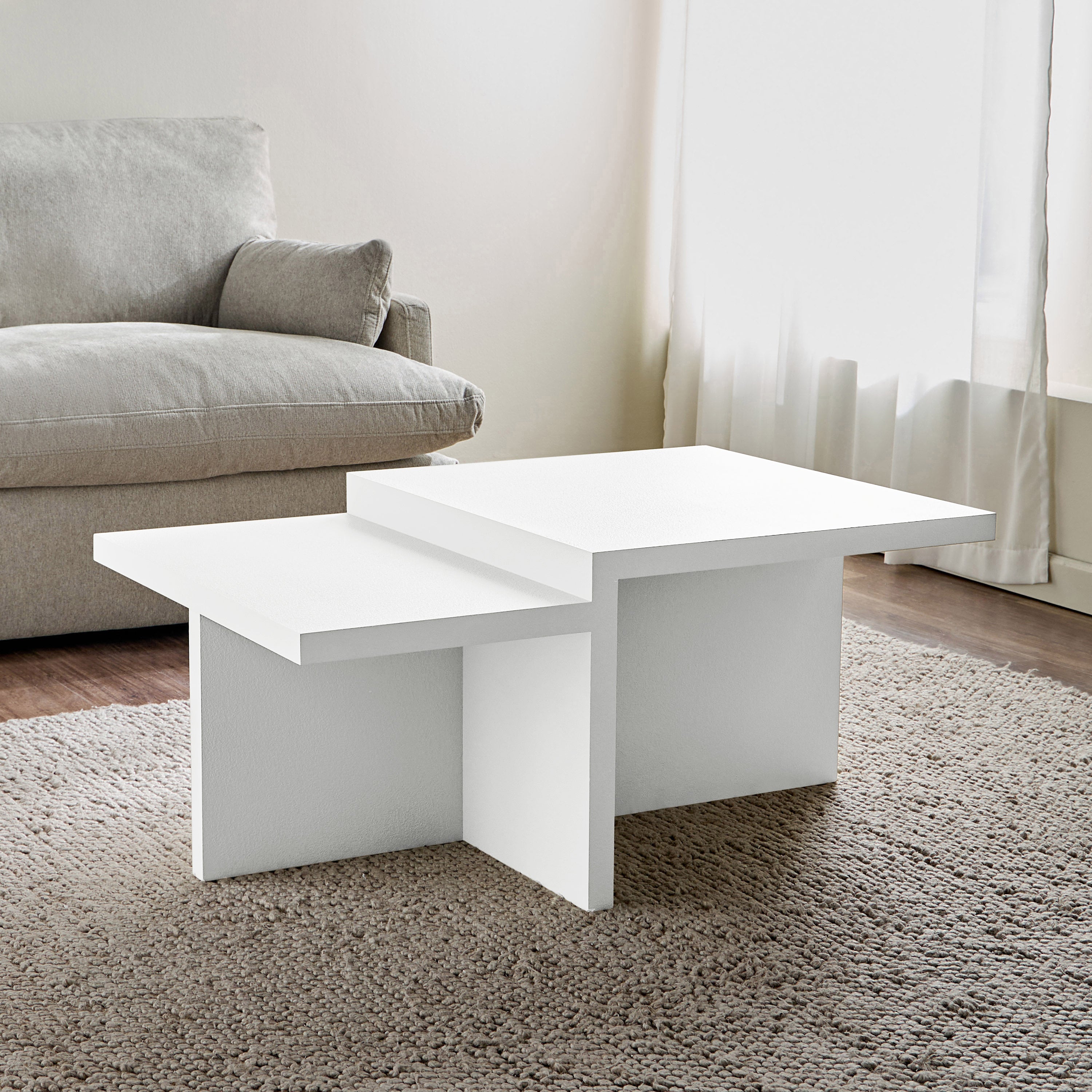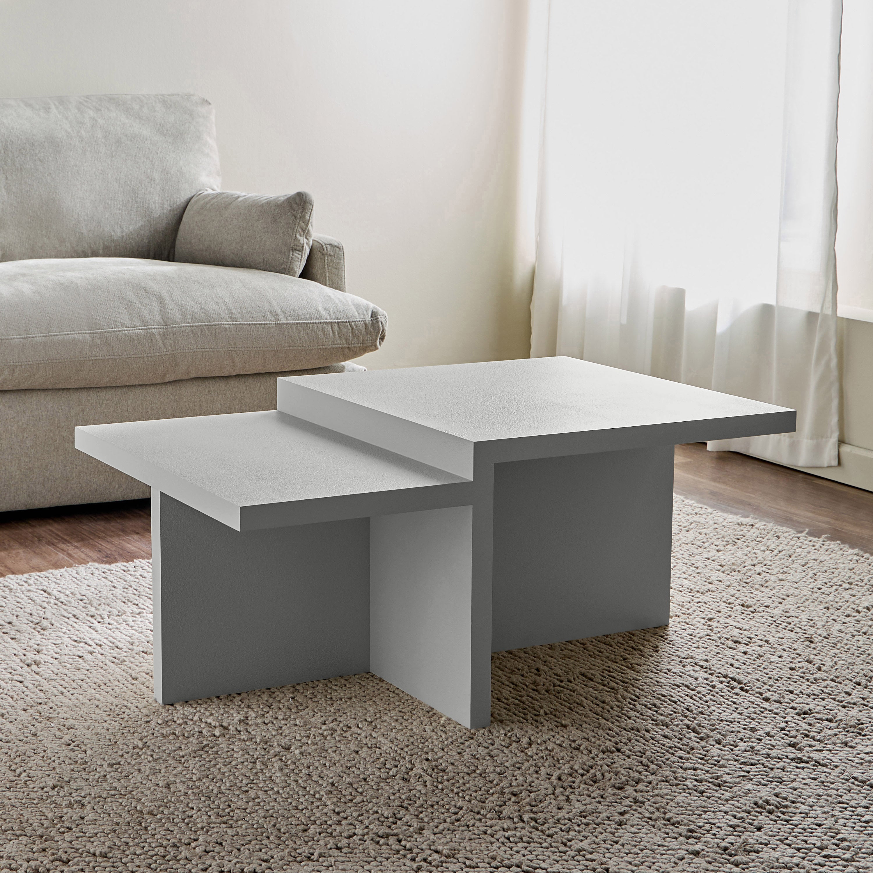 Discover the bold geometry of this coffee table, where architectural design meets modern elegance. Featuring a dynamic, asymmetrical form with clean lines and a textured finish, this table adds a sculptural statement to any living space. Its sturdy construction ensures durability, while the multi-level tabletop provides visual interest and functional surface space. A perfect fusion of art and utility, this coffee table enhances contemporary interiors with its striking yet versatile design.