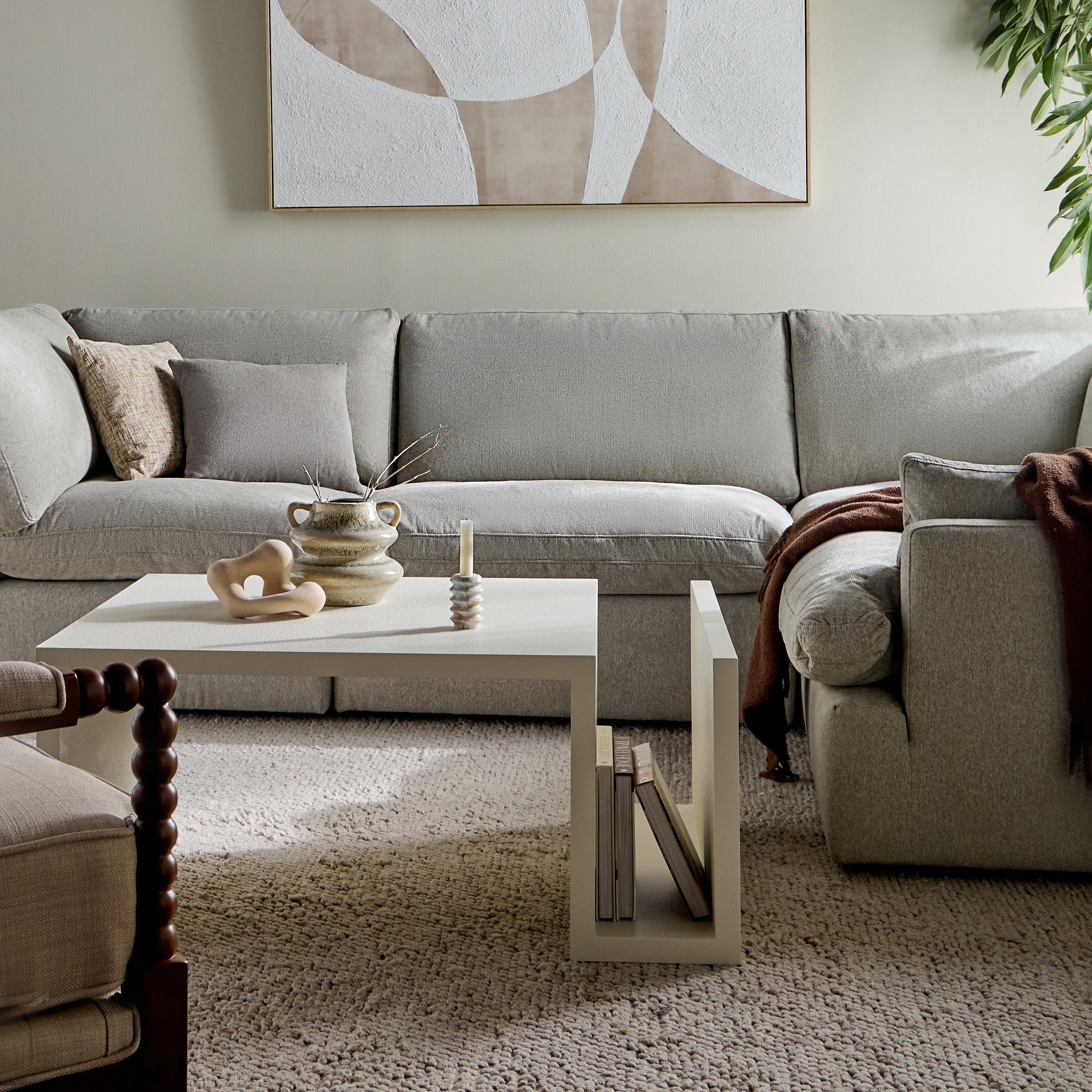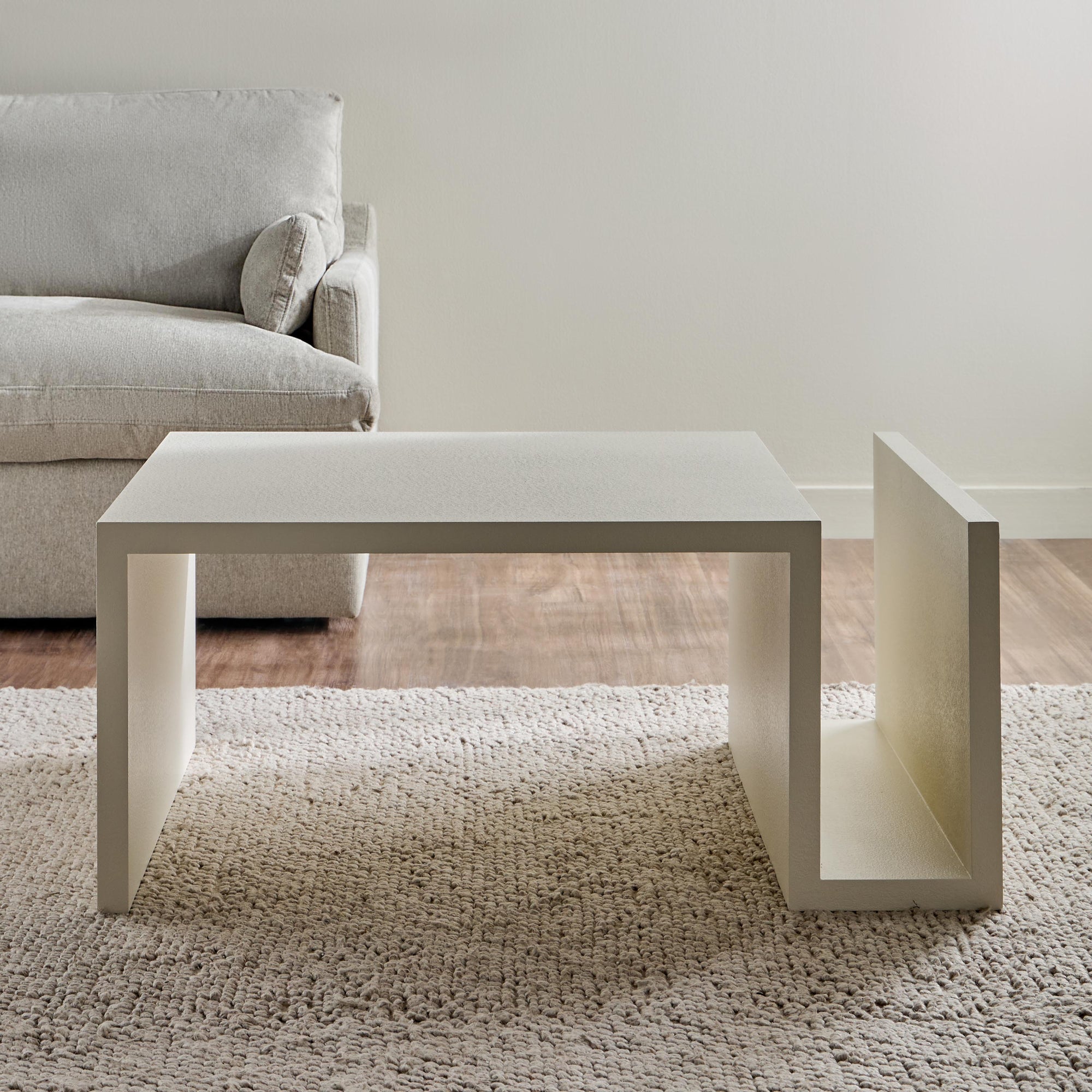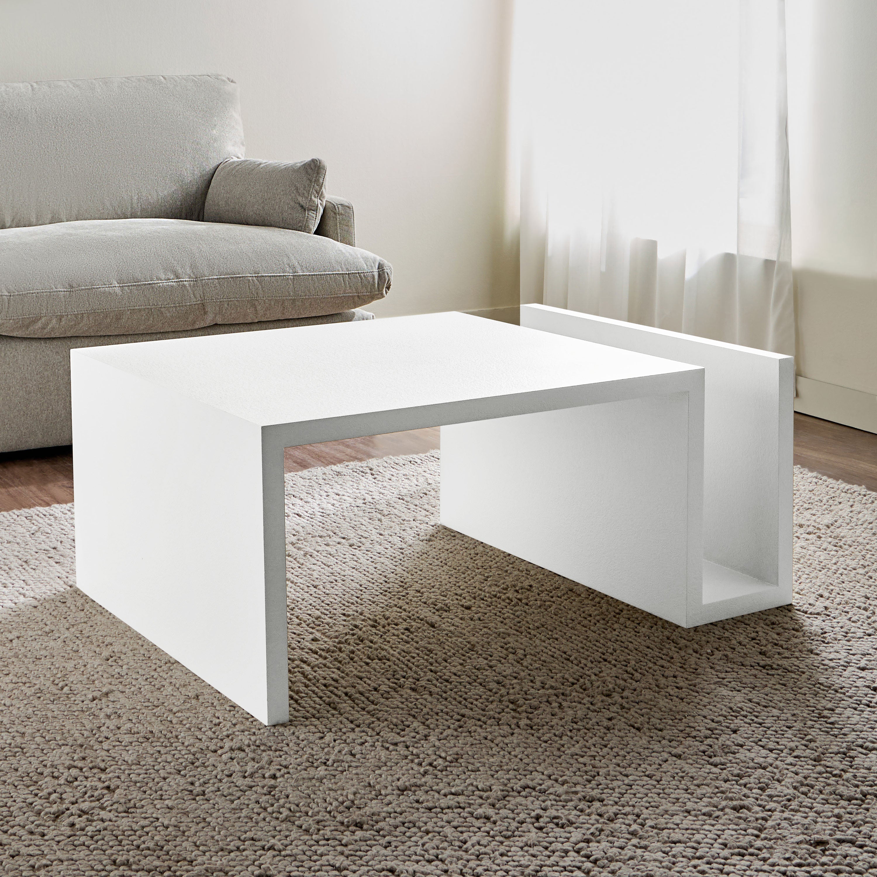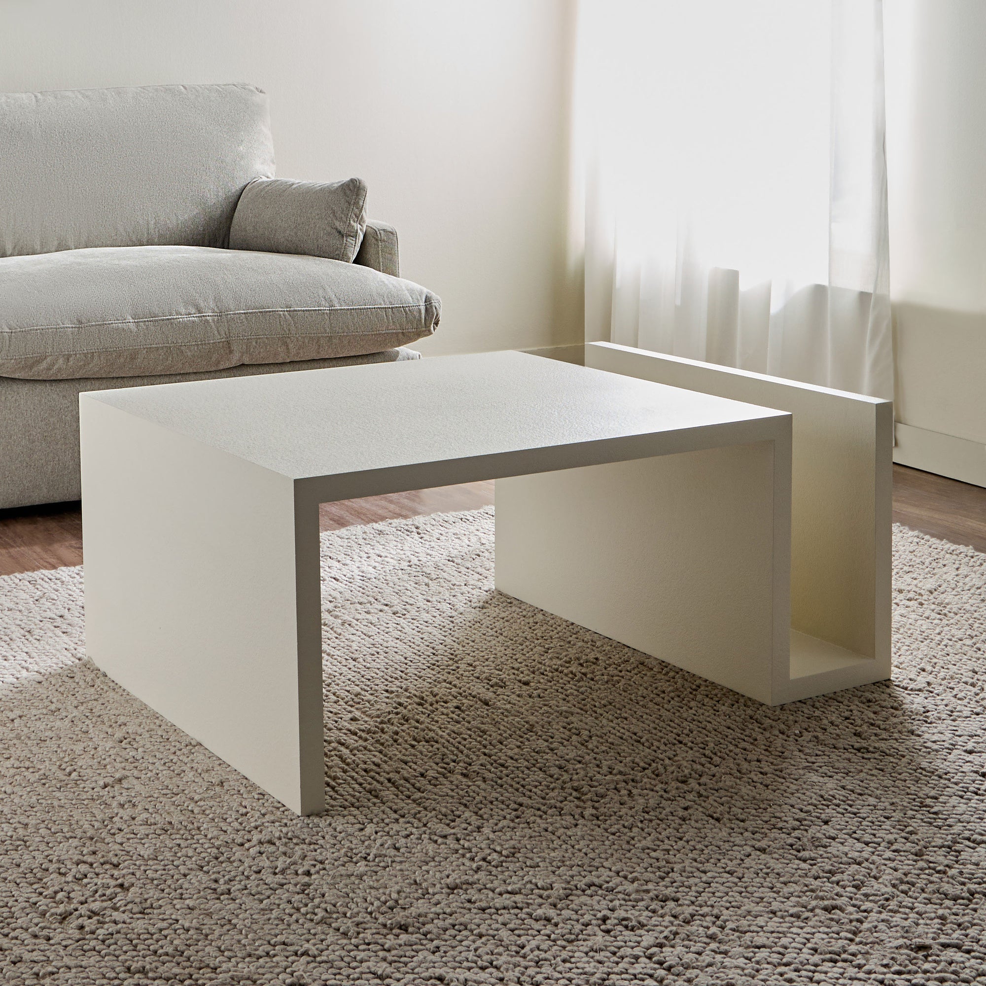 Elevate your living space with this coffee table, a bold statement in modern design. Defined by its asymmetrical structure and clean lines, this table brings a contemporary edge to any setting. The unique layered design not only enhances its visual appeal but also provides added functionality, offering space for books, decor, or everyday essentials. Constructed from quality, durable material, it ensures lasting strength and style. Perfect for those who appreciate minimalist aesthetics with a distinctive architectural touch.