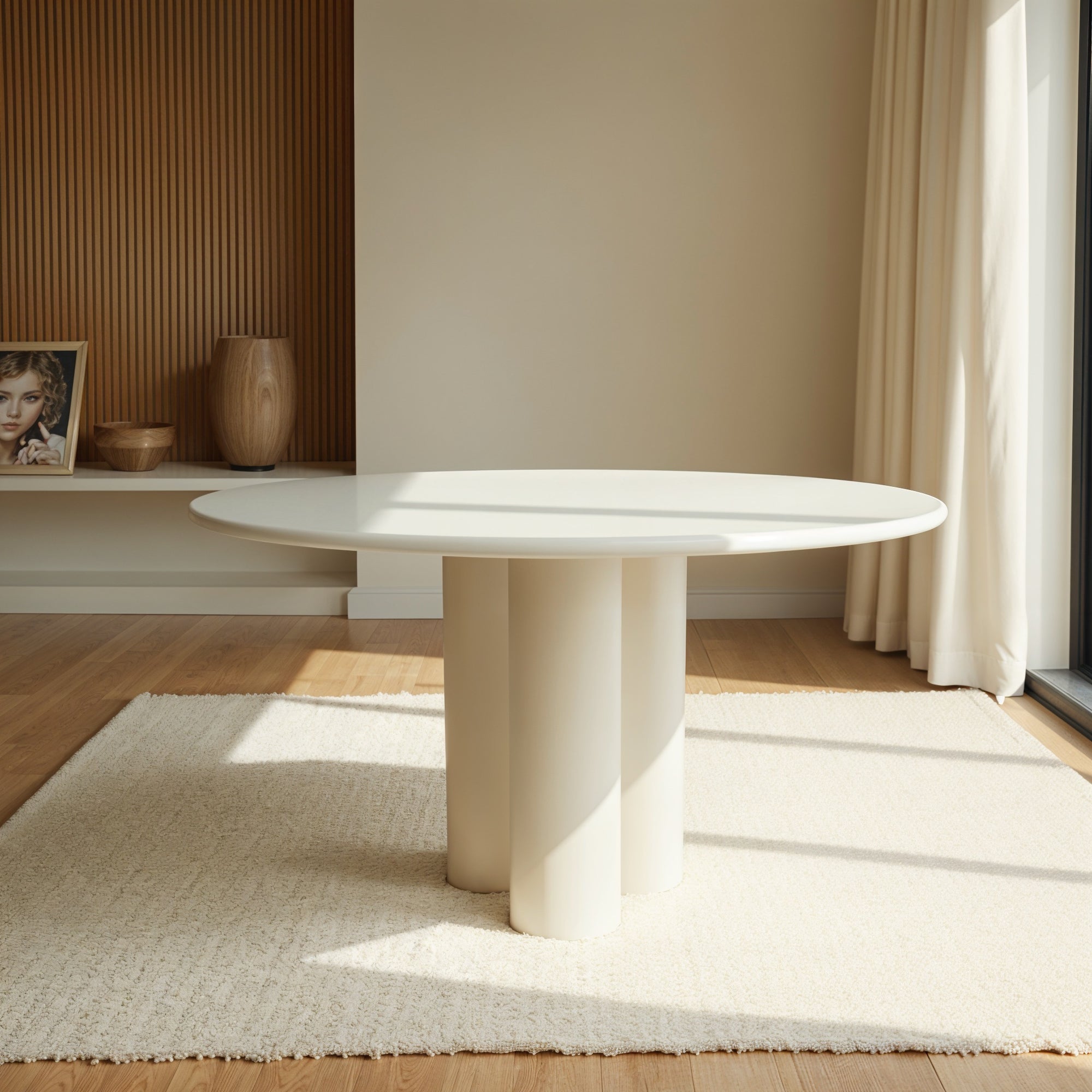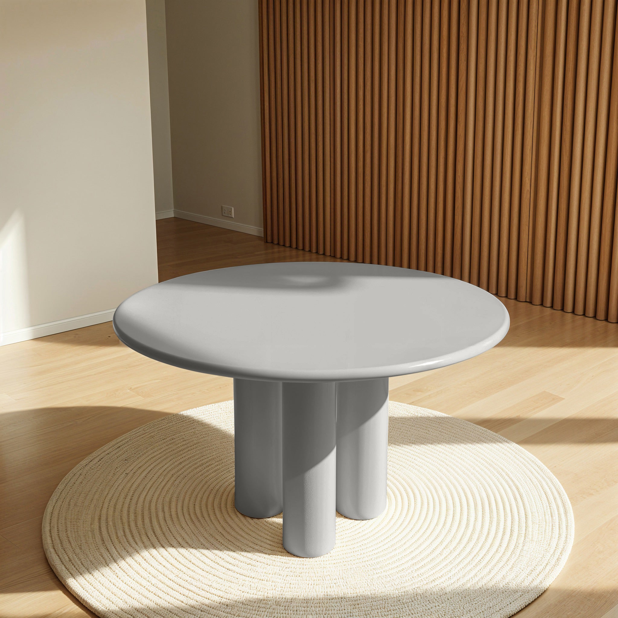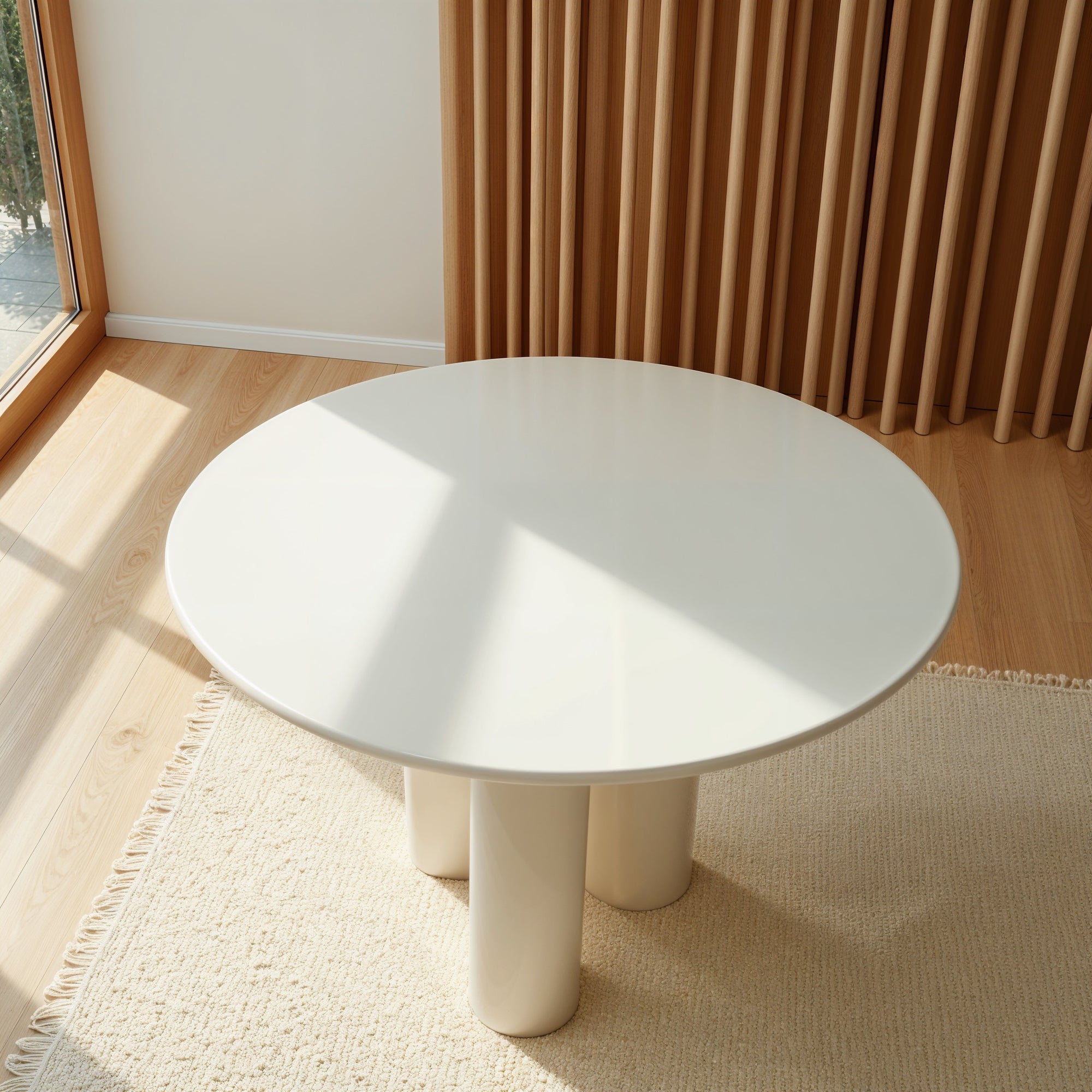 With a smooth, circular top supported by three legs, this dining table offers both stability and a sleek aesthetic. Its textured finish adds a touch of sophistication, making it a stylish centerpiece for any dining room. Host family meals or entertain guests around this table that combines durability and contemporary design.