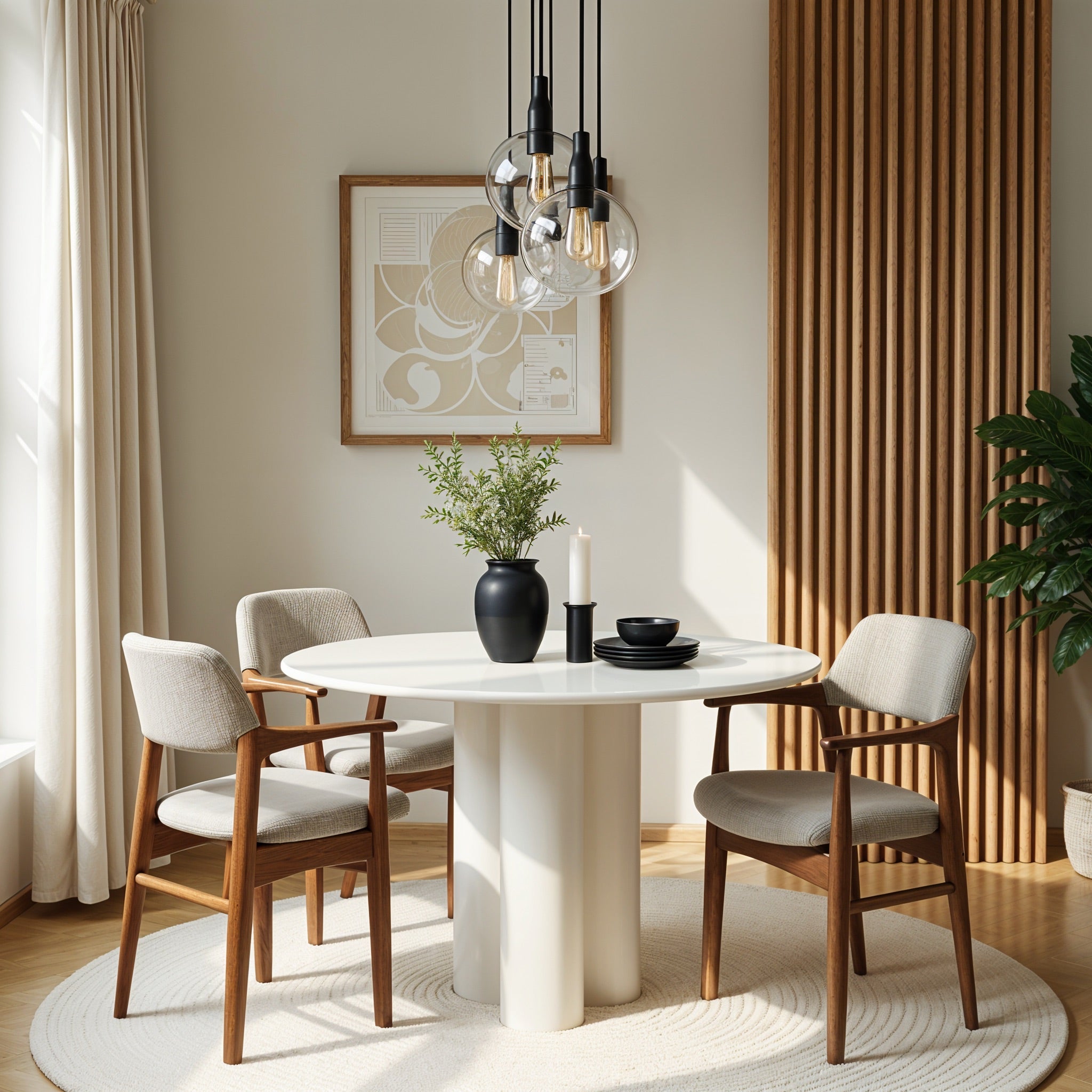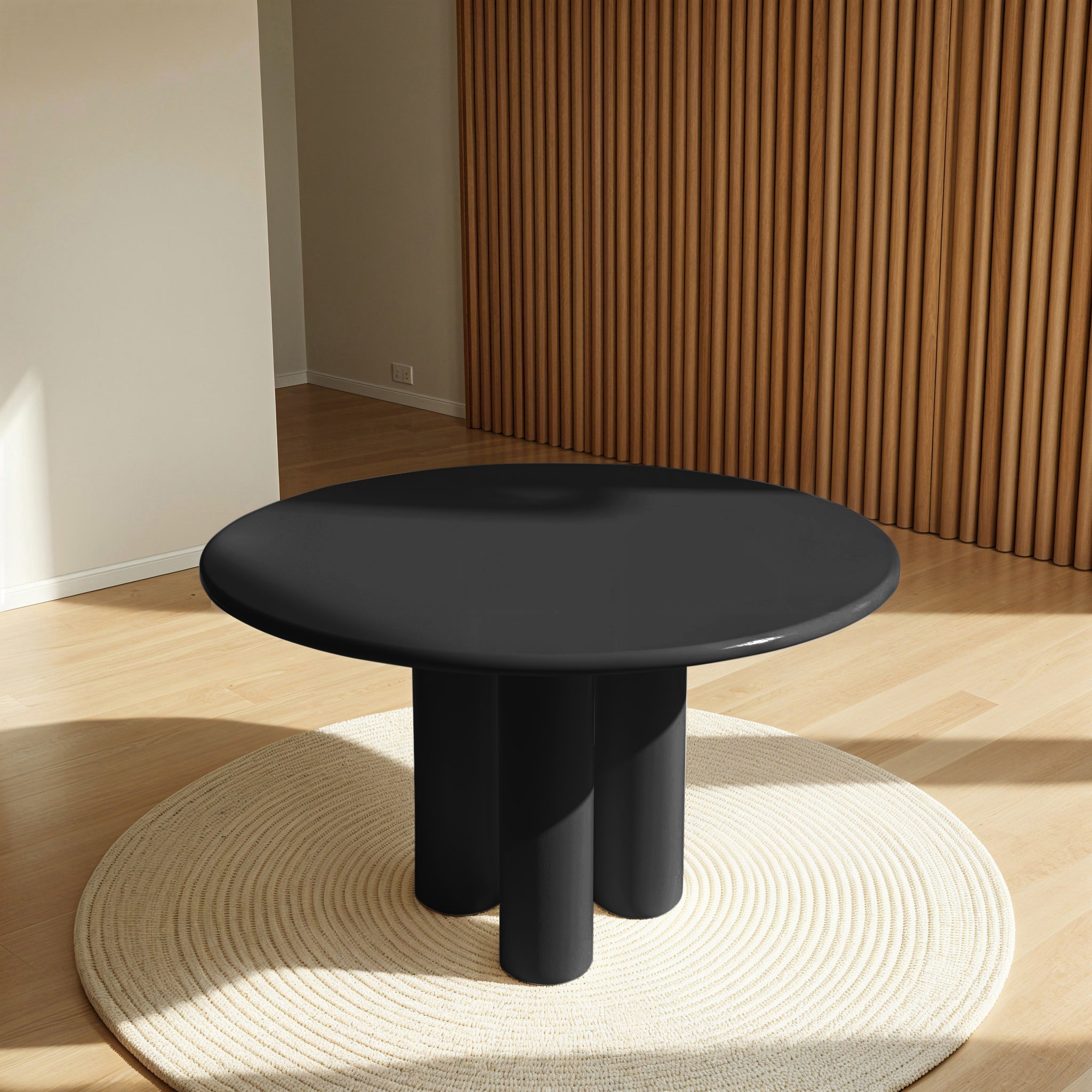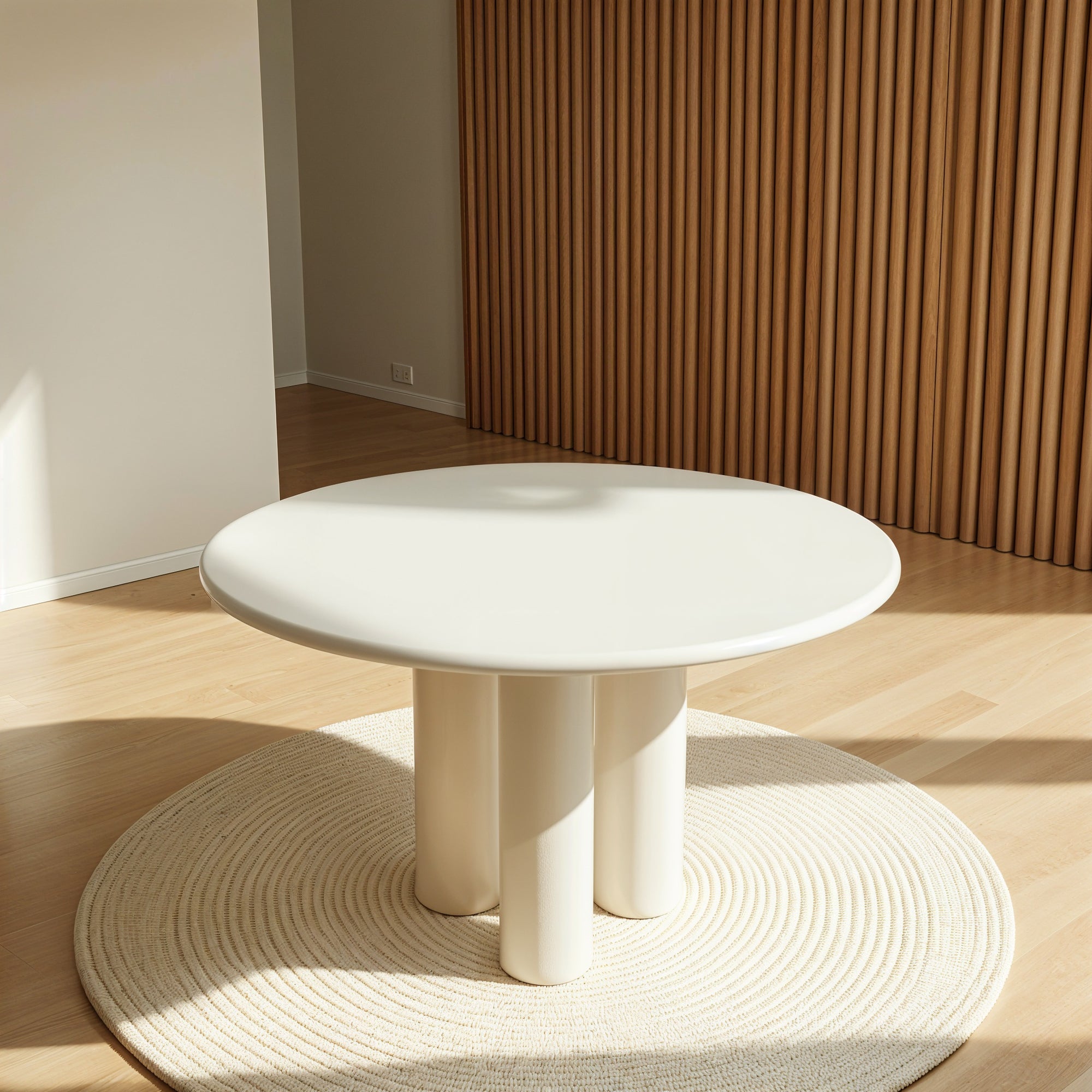 With a smooth, circular top supported by three legs, this dining table offers both stability and a sleek aesthetic. Its textured finish adds a touch of sophistication, making it a stylish centerpiece for any dining room. Host family meals or entertain guests around this table that combines durability and contemporary design.