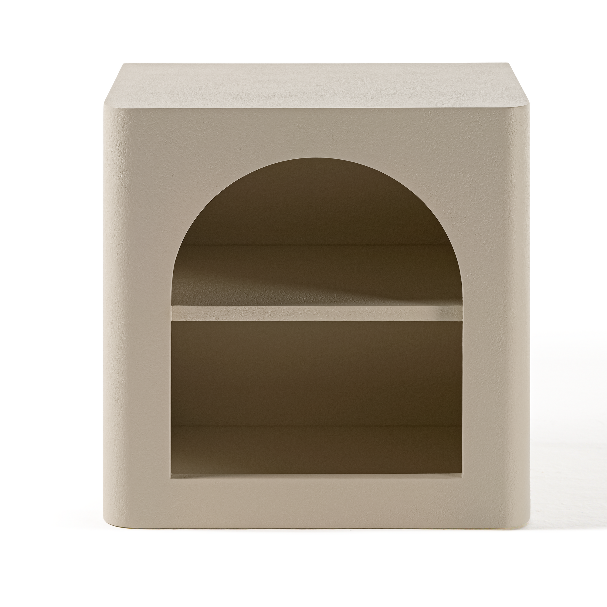 Blending minimalism with subtle architectural detail, this contemporary side unit features a smooth light-toned finish and a clean rectangular form softened by rounded edges. The defining feature is its arched open shelf, introducing a sculptural element that adds rhythm and depth to the design. With two storage levels, it balances practicality with refined aesthetics ideal as a bedside table, side table, or accent piece. A versatile addition to modern interiors, it embodies understated sophistication with a touch of character.