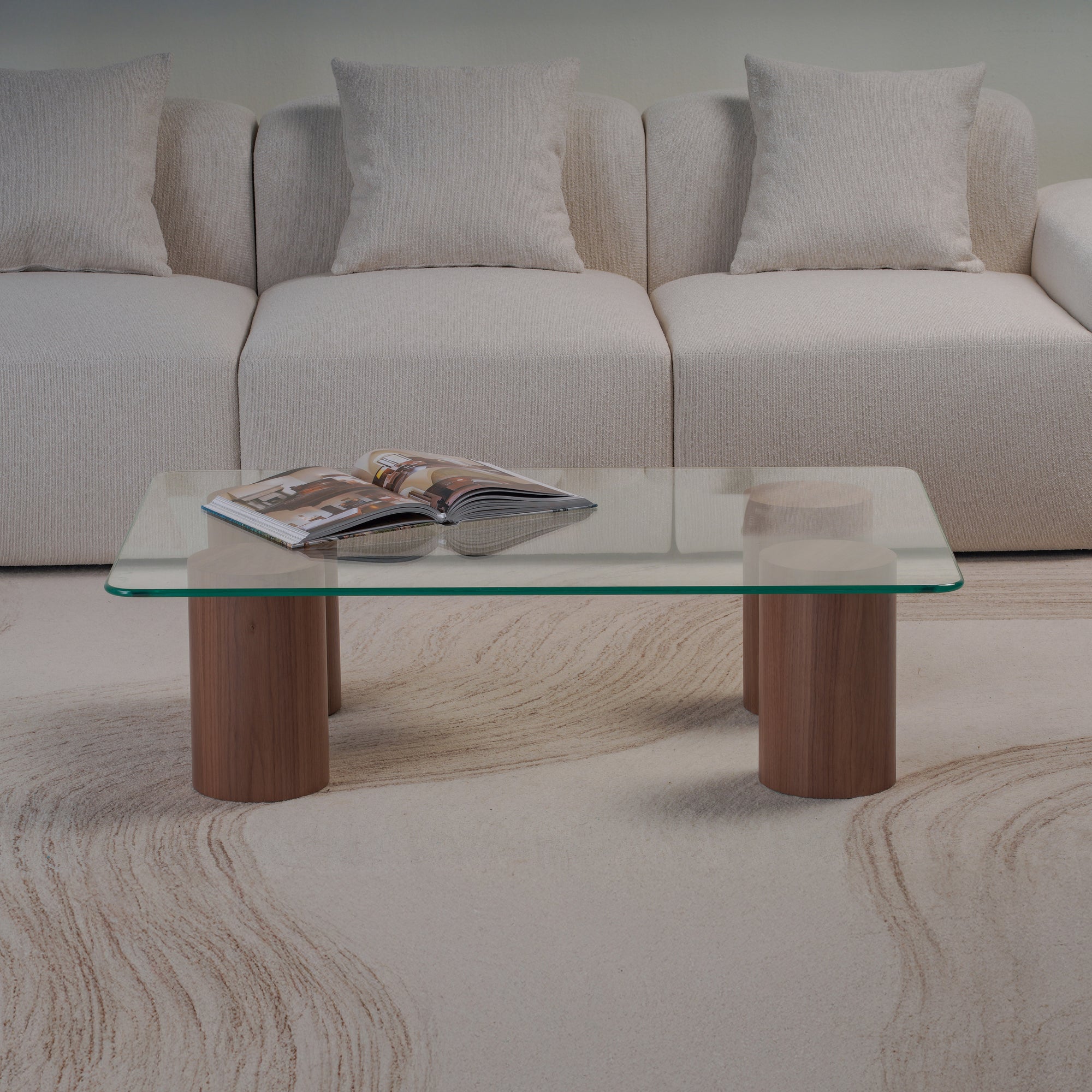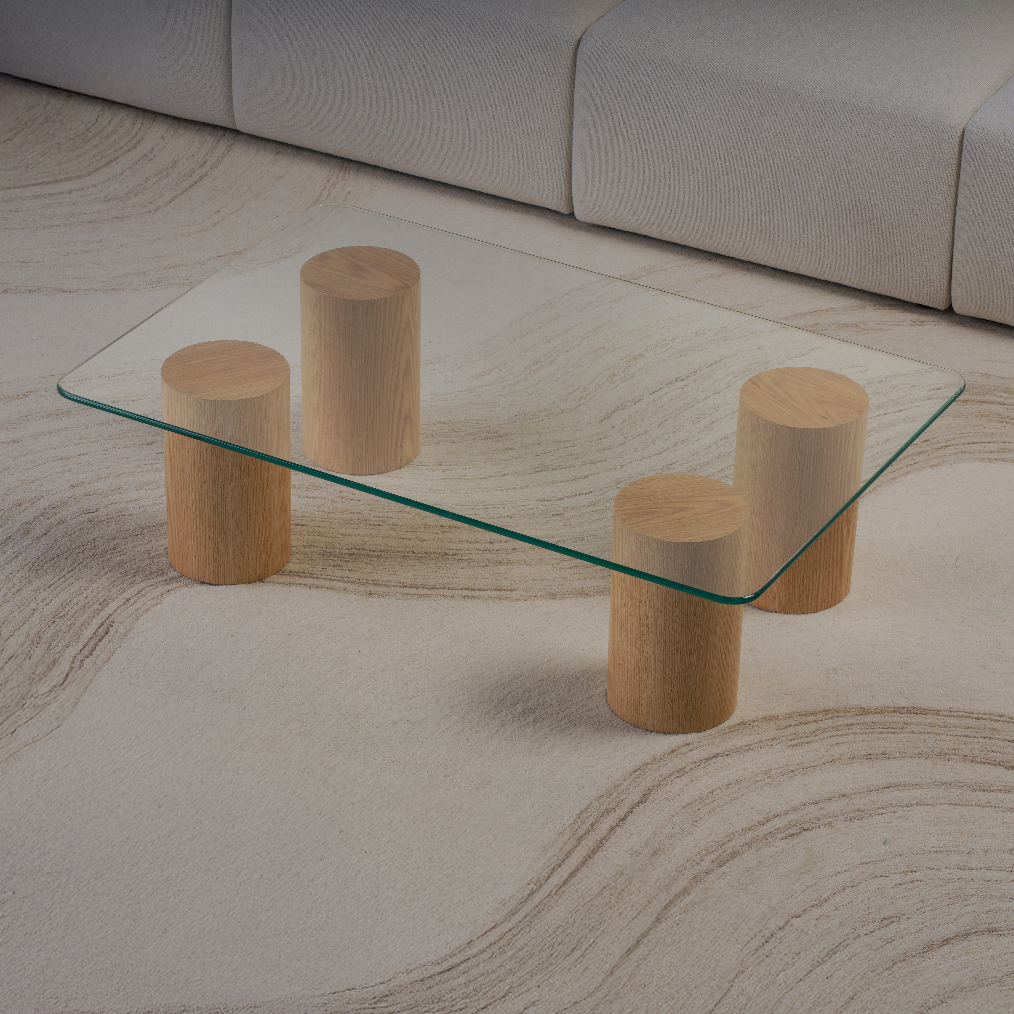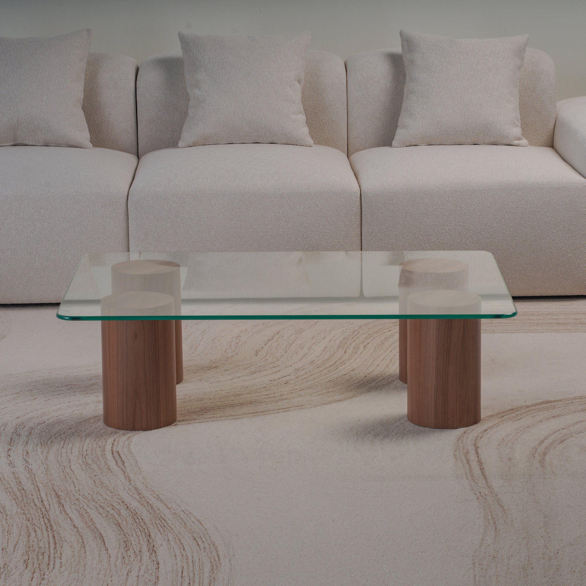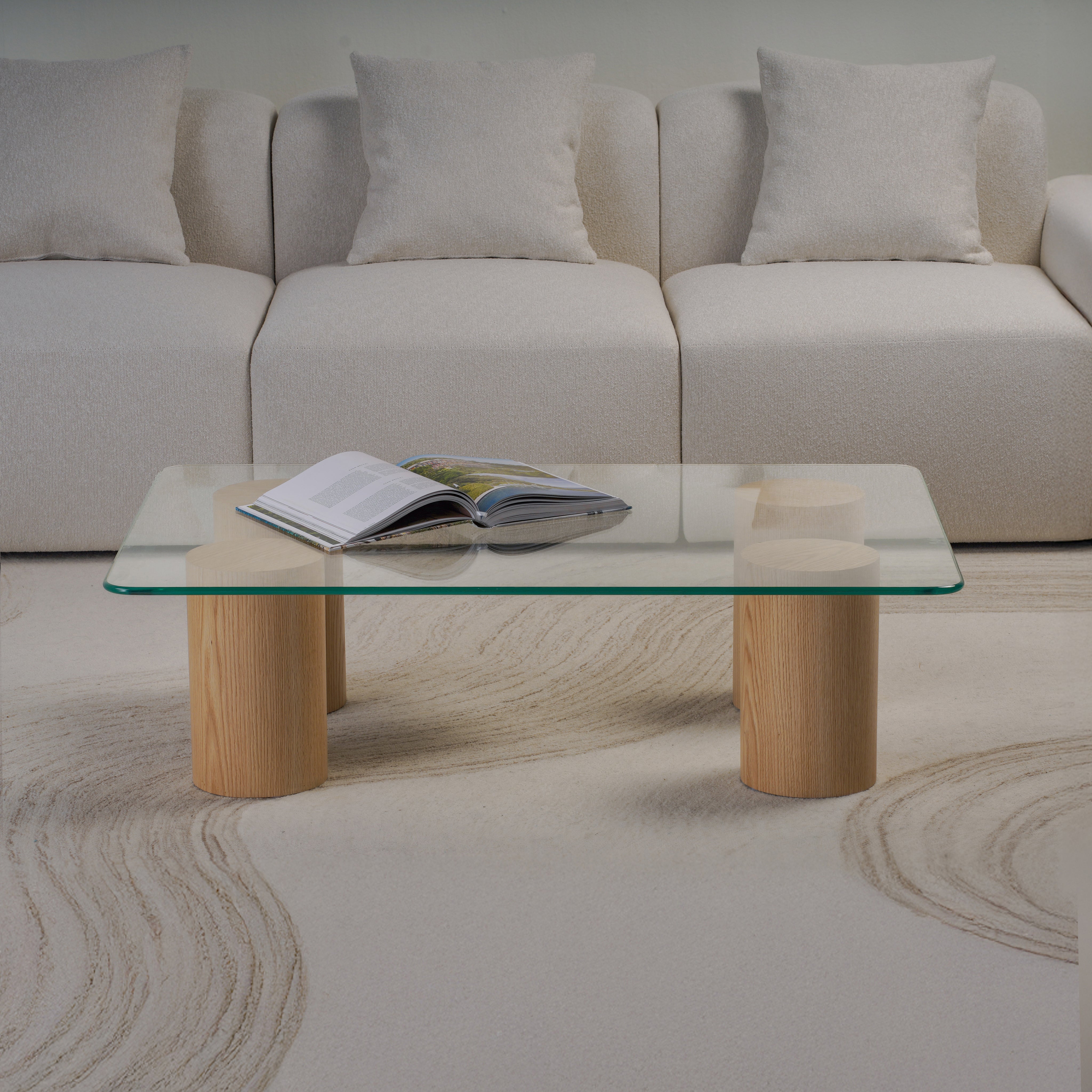 Experience the elegance of structure and simplicity with this rectangle glass coffee table. Resting on four cylindrical bases finished in smooth plaster, it combines bold architectural lines with a calming, tactile presence. The clear glass top introduces a sense of openness and fluidity, perfectly balancing the grounded design below. Ideal for modern living rooms, it brings together sculptural charm and everyday functionality in a refined, contemporary form.