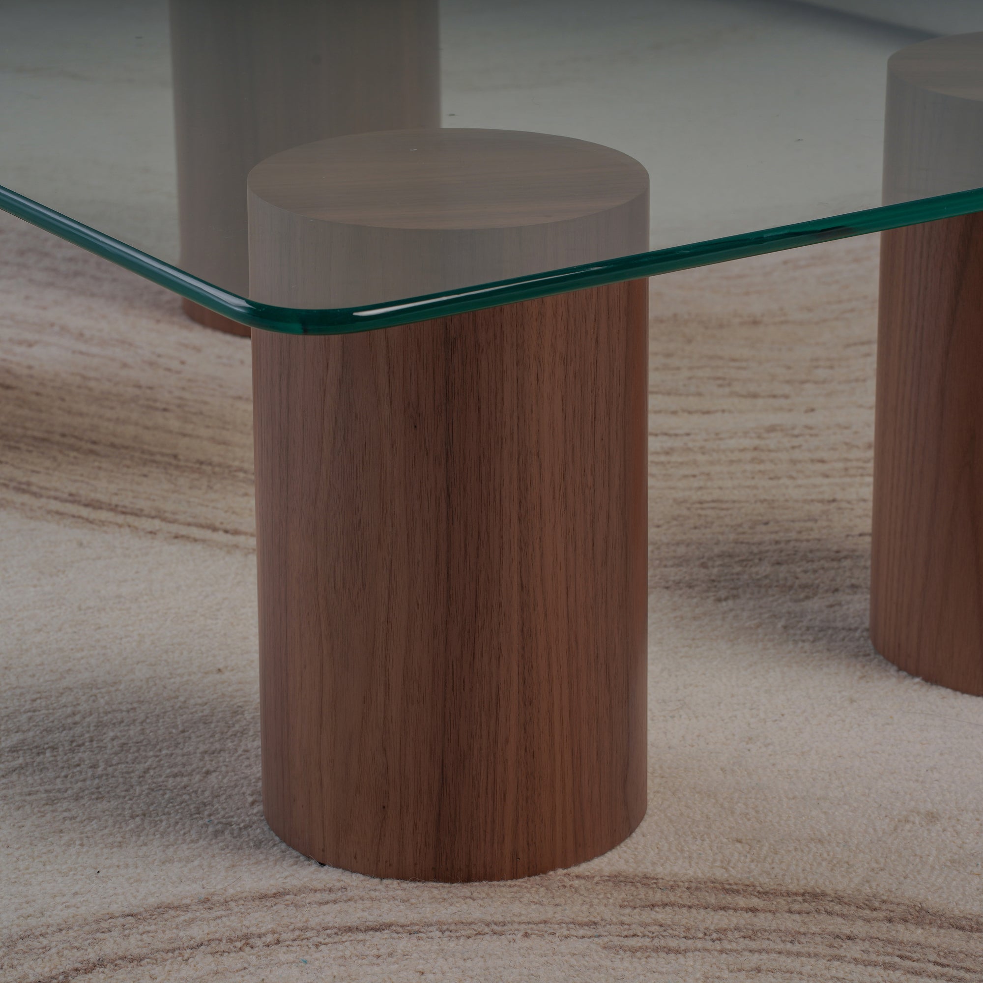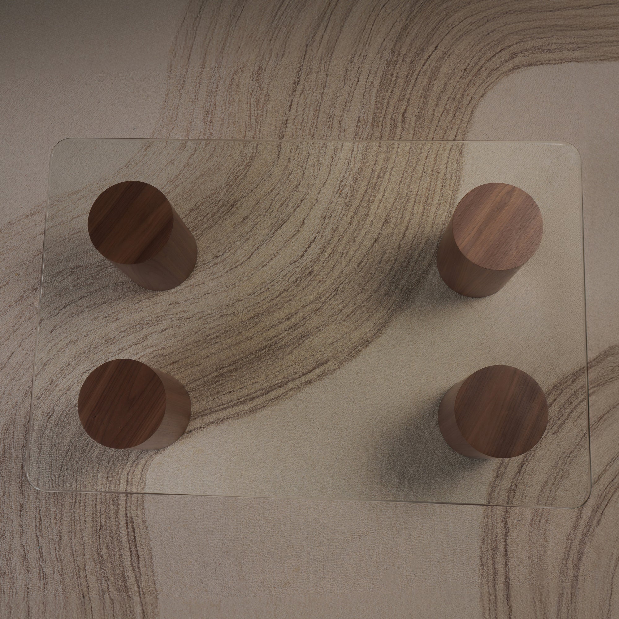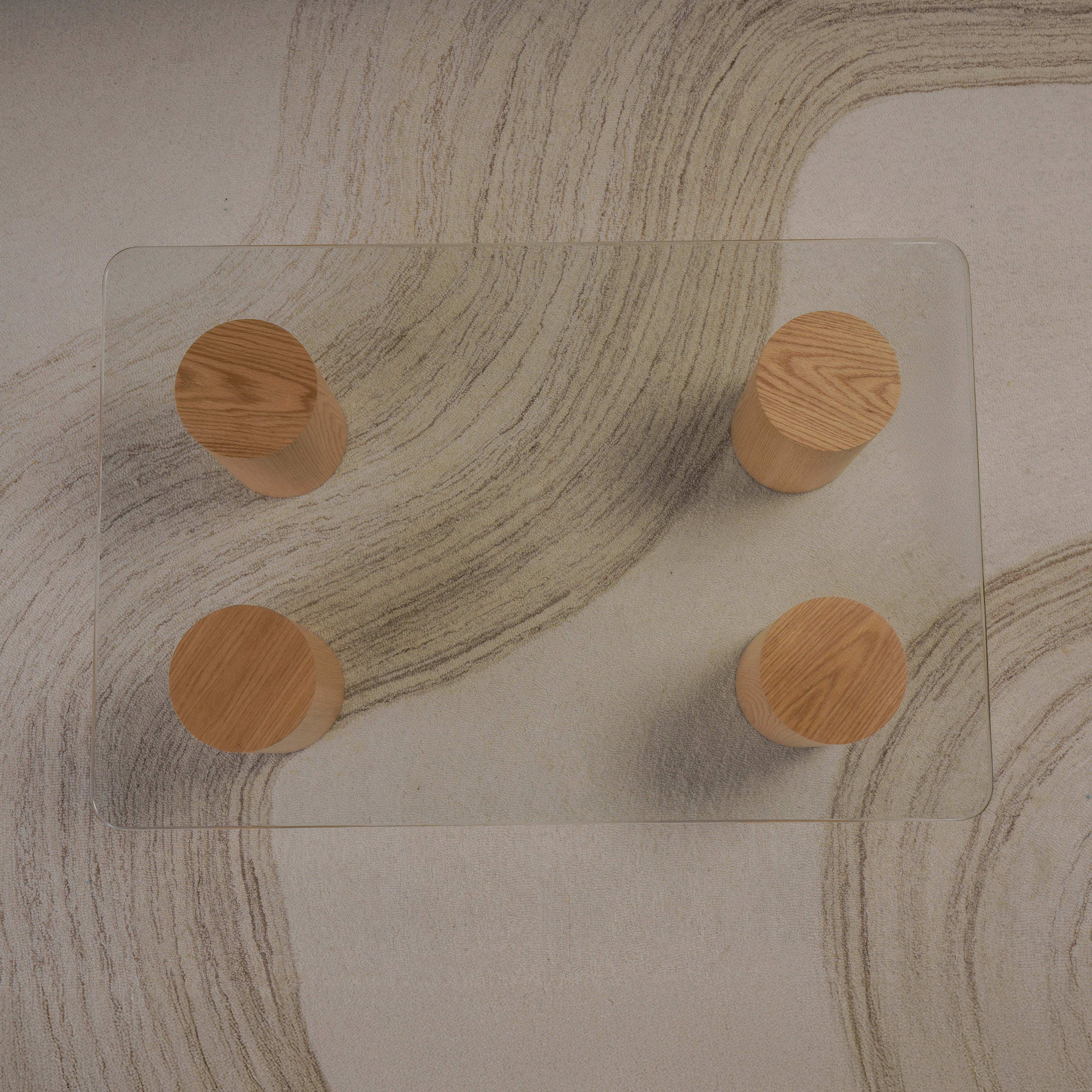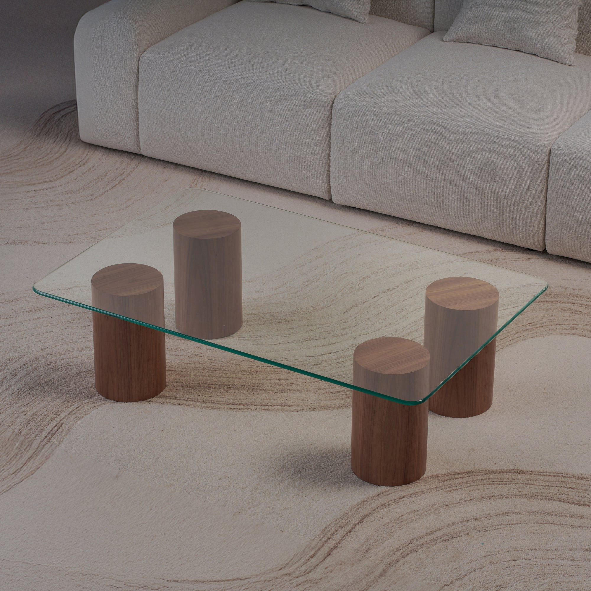 Experience the elegance of structure and simplicity with this rectangle glass coffee table. Resting on four cylindrical bases finished in smooth plaster, it combines bold architectural lines with a calming, tactile presence. The clear glass top introduces a sense of openness and fluidity, perfectly balancing the grounded design below. Ideal for modern living rooms, it brings together sculptural charm and everyday functionality in a refined, contemporary form.