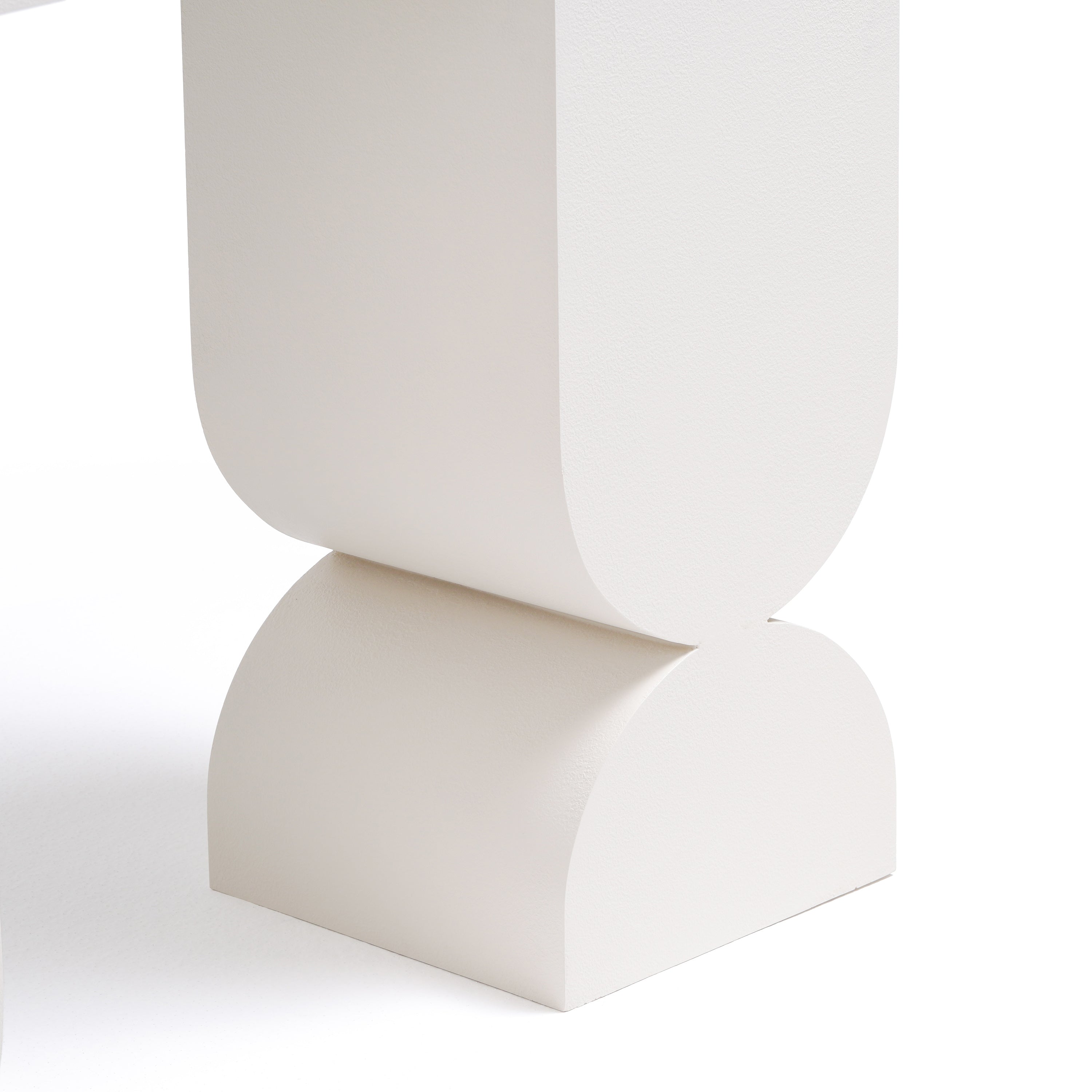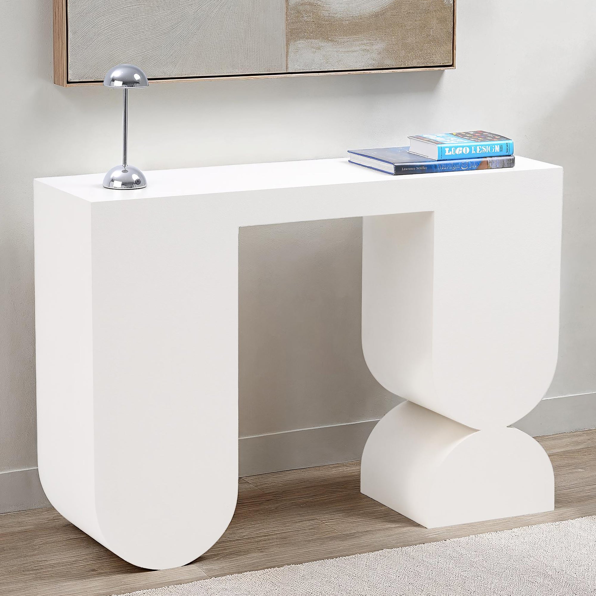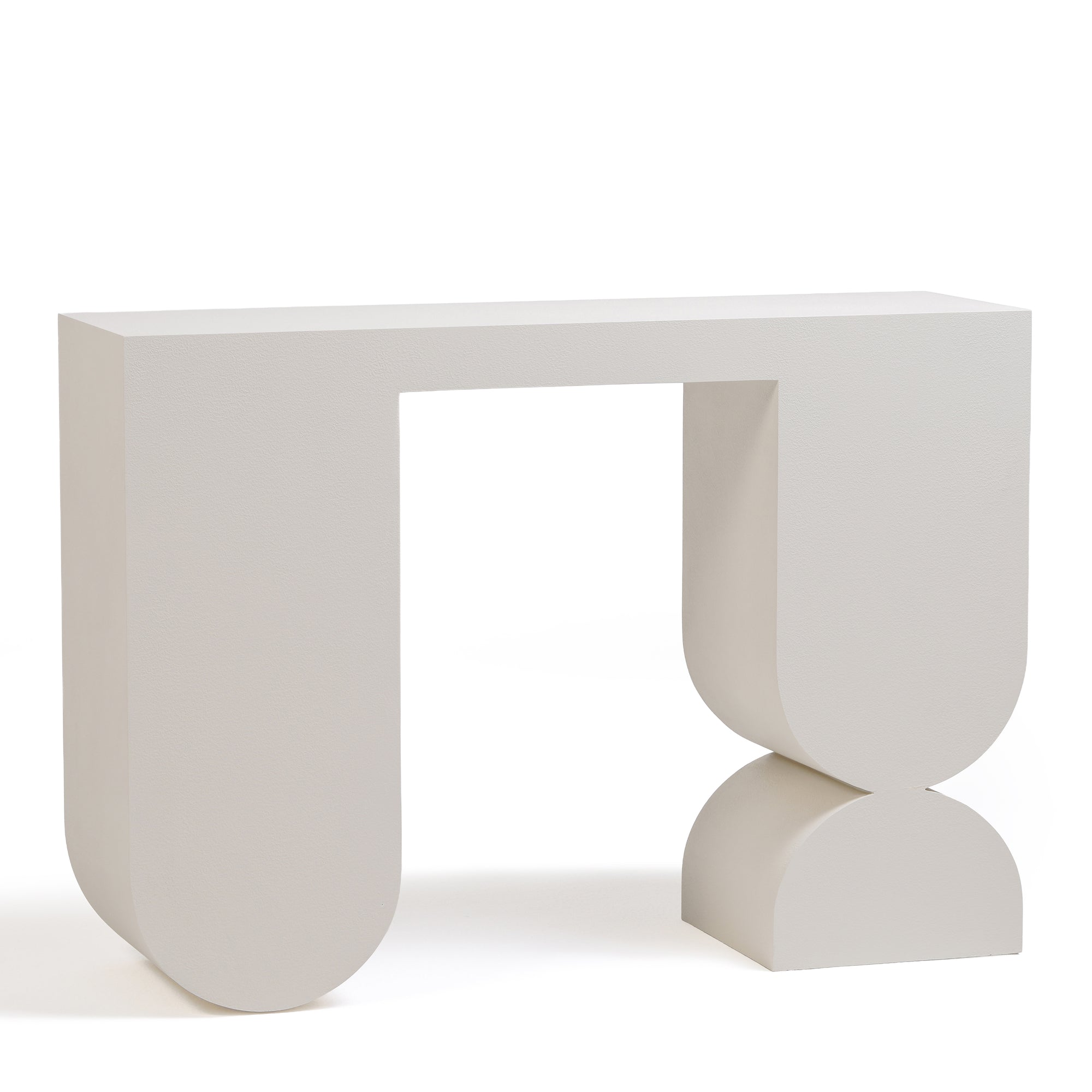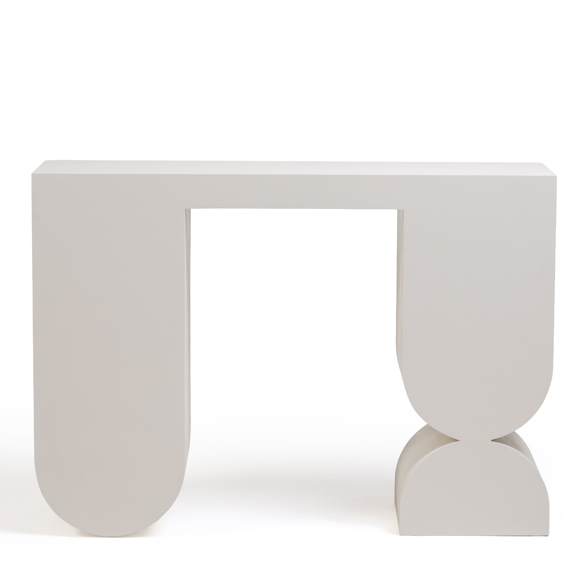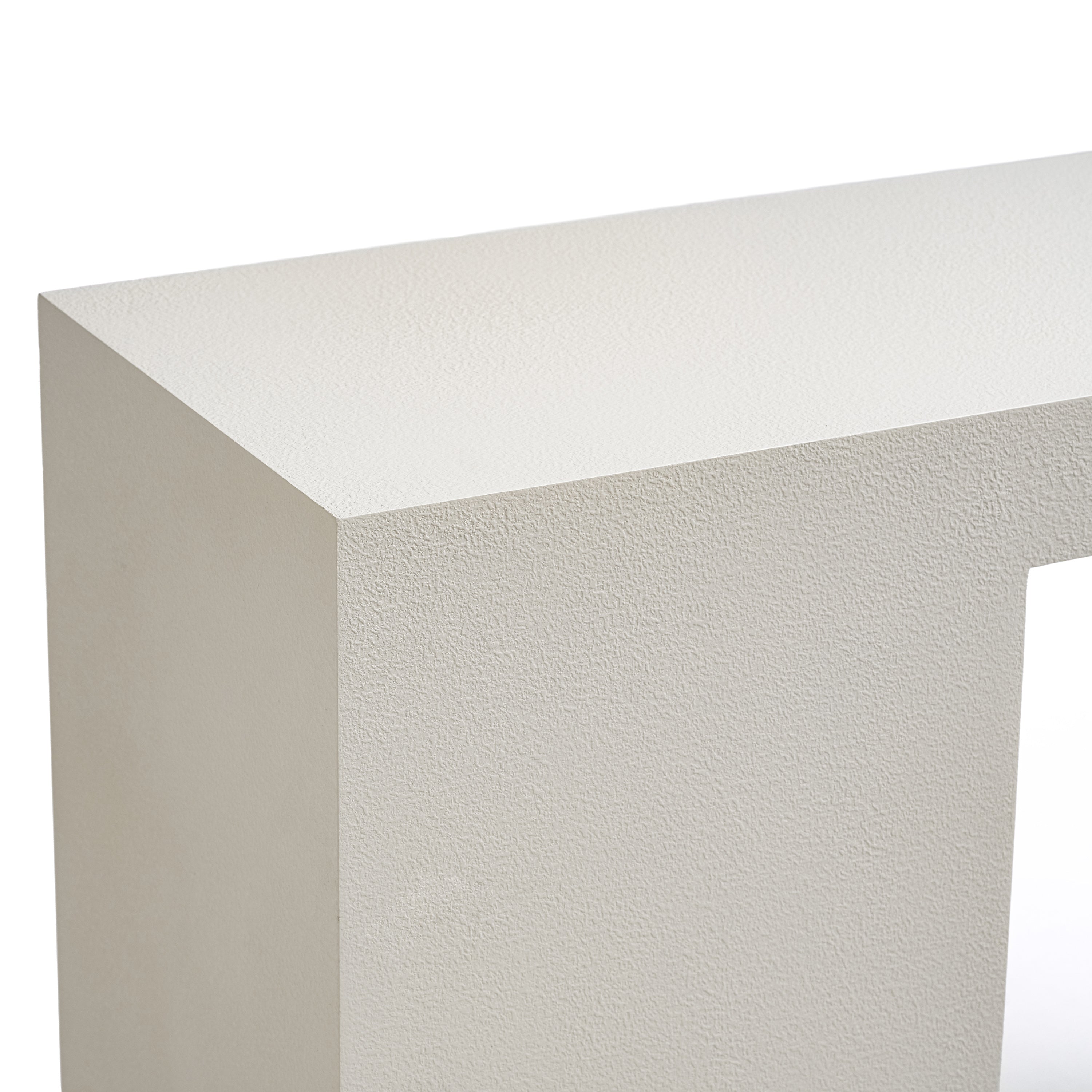Experience the purity of form and artistic balance with this Sculptural Console. Defined by its bold geometric silhouette and softened by a smooth plaster finish, it strikes a seamless harmony between structure and simplicity. The interplay of curved volumes and clean lines adds a gallery-like presence, making it as much a piece of art as it is a functional surface. Whether placed in an entryway or living space, it brings quiet sophistication with a contemporary edge.