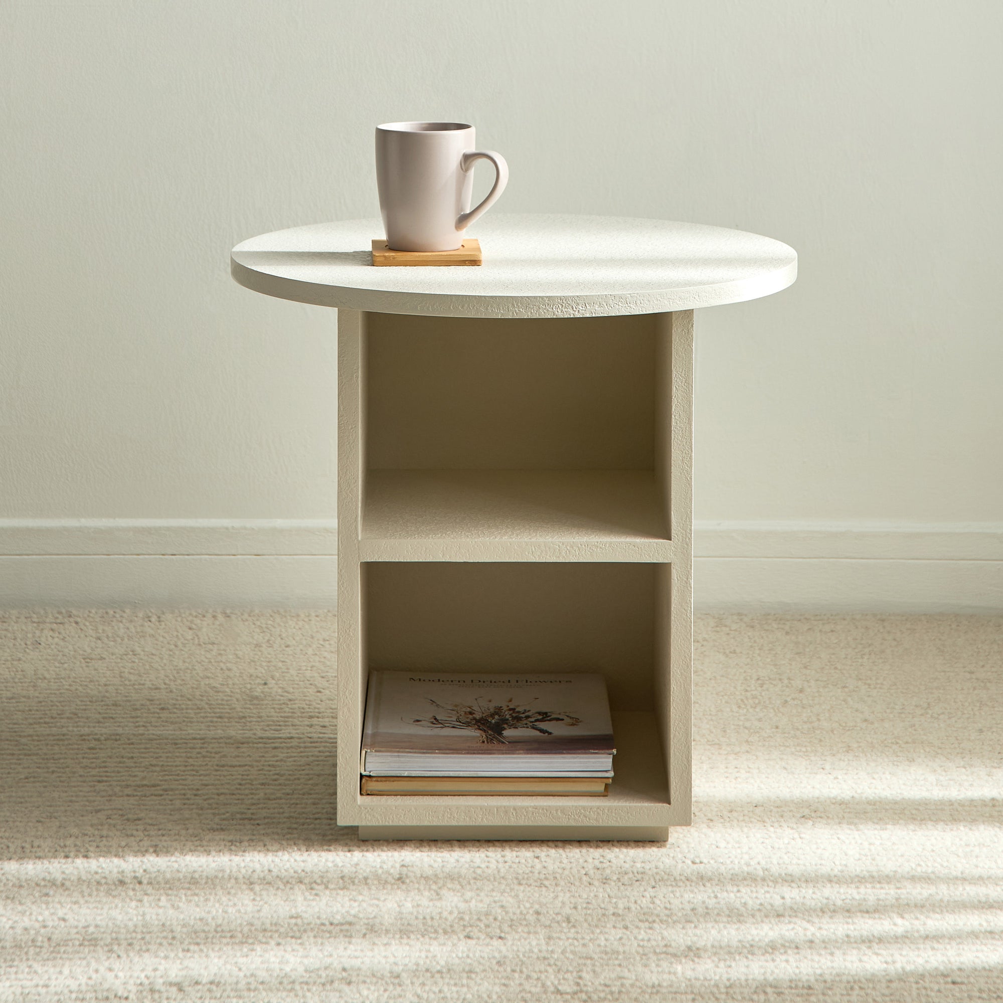 This round side table is a stylish and functional addition to any living space. Its compact size makes it perfect for small spaces, while its open design provides ample storage for books, magazines, and other essentials. The engineered wood construction ensures durability and longevity, while the finish adds a touch of warmth and elegance.