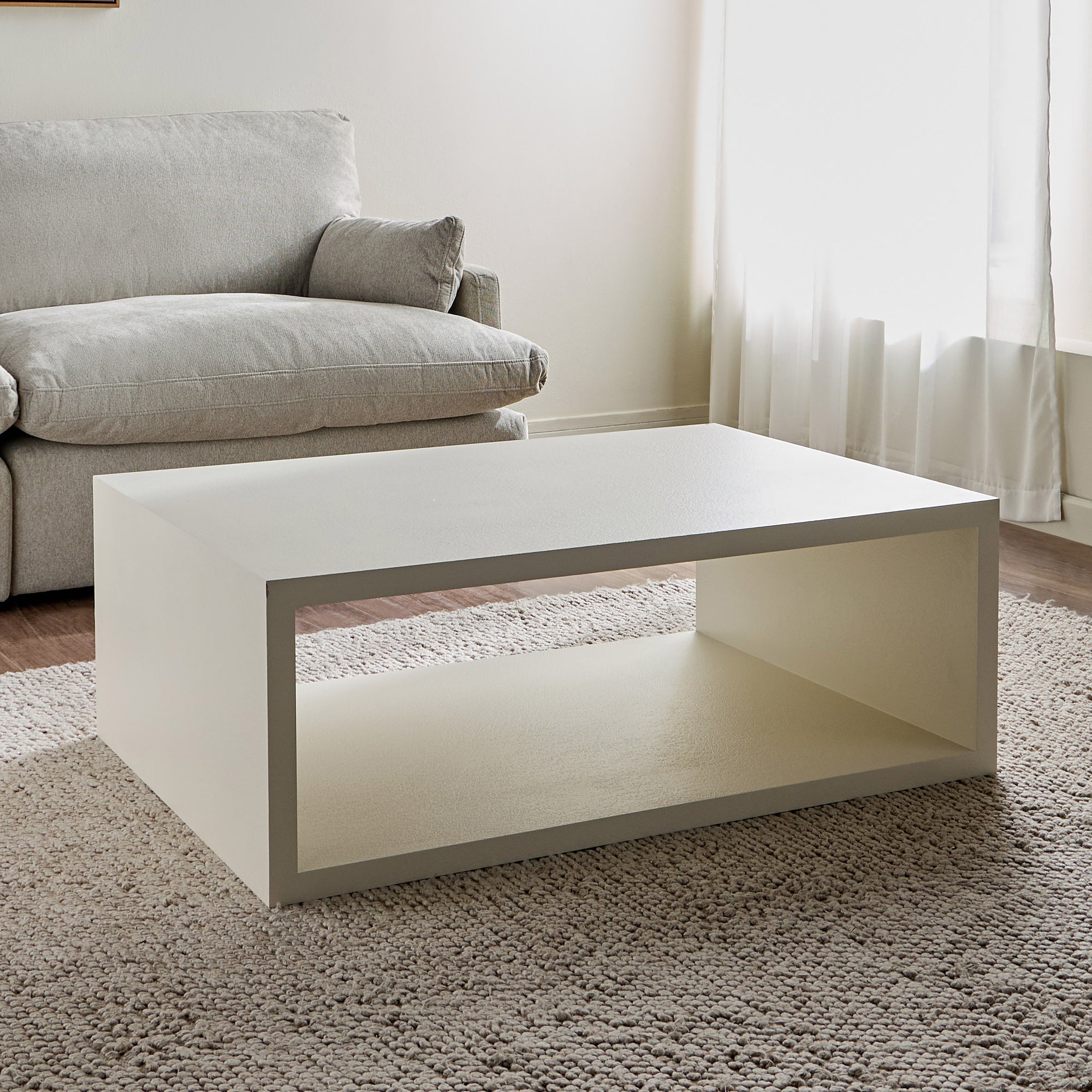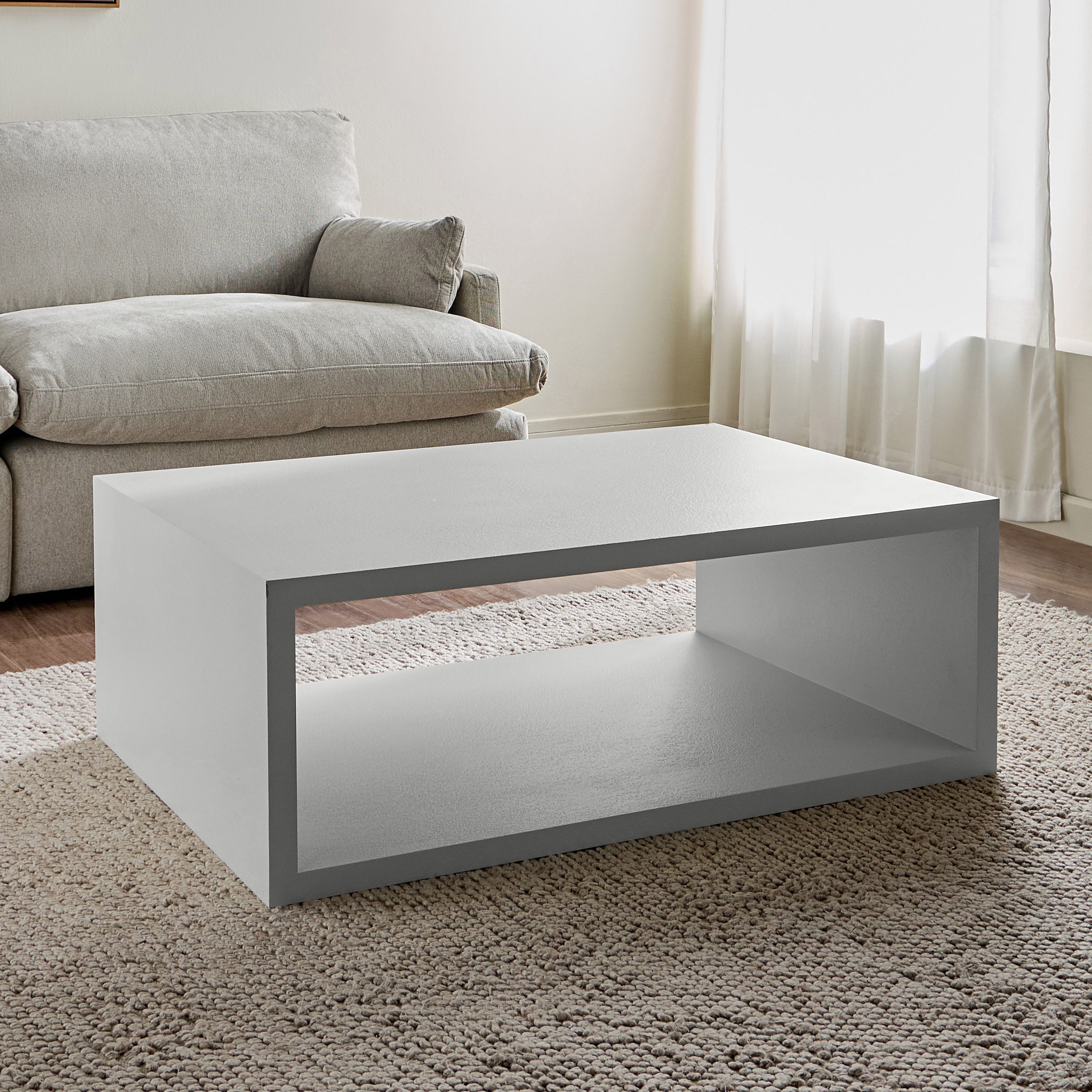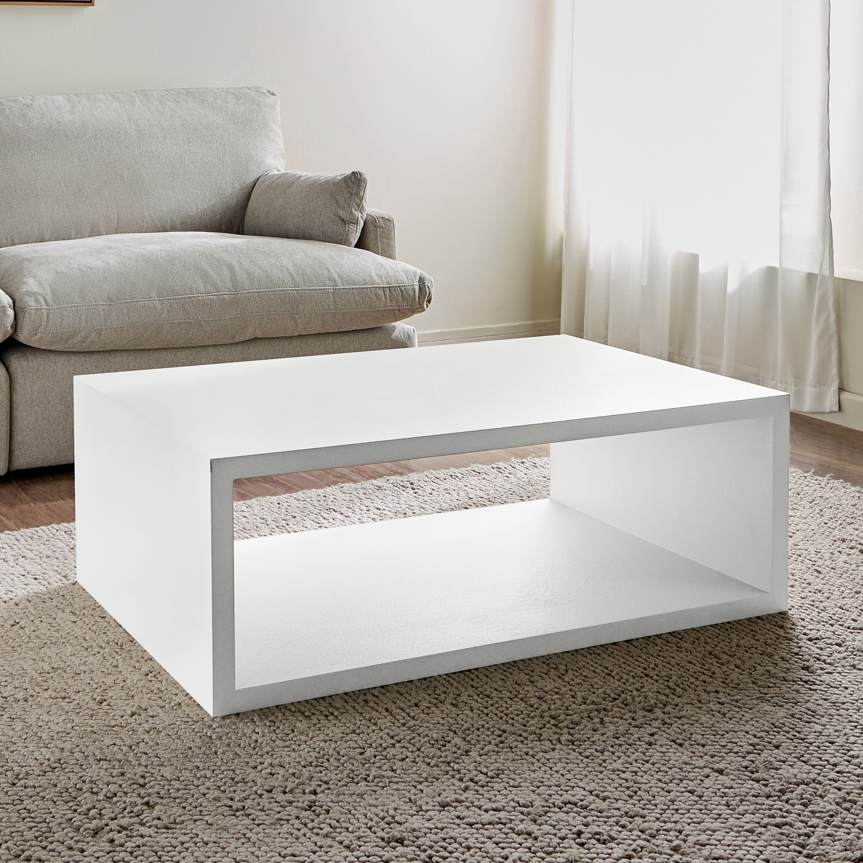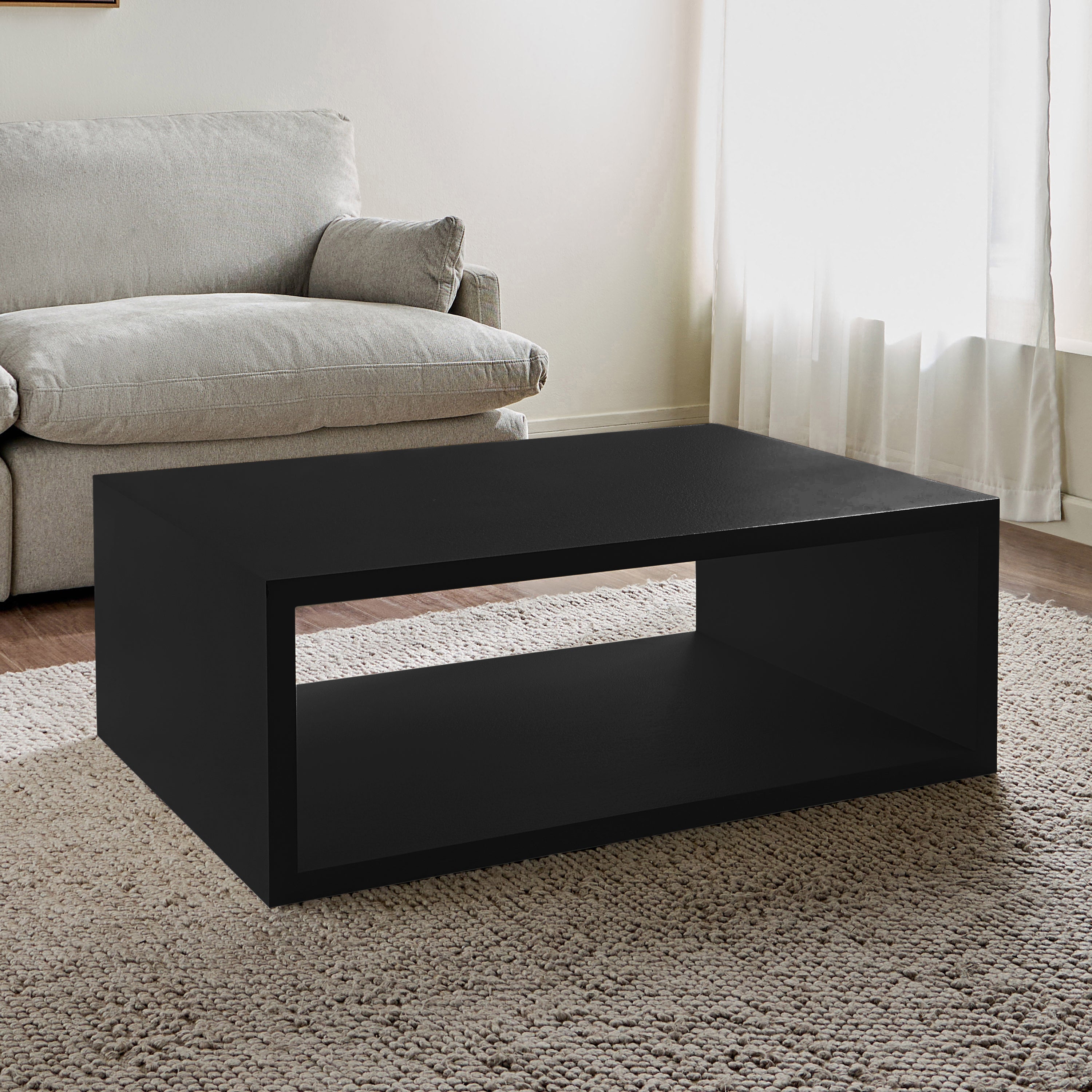 Sleek, structured, and effortlessly modern, this coffee table is a perfect blend of style and function. Featuring a bold rectangular form with an open storage compartment, this piece offers visual appeal and practicality. Its clean lines and smooth finish create a refined aesthetic, while the durable construction ensures longevity. Ideal for keeping your essentials organized while adding a contemporary touch to your living space, this table is a statement of minimalist sophistication.