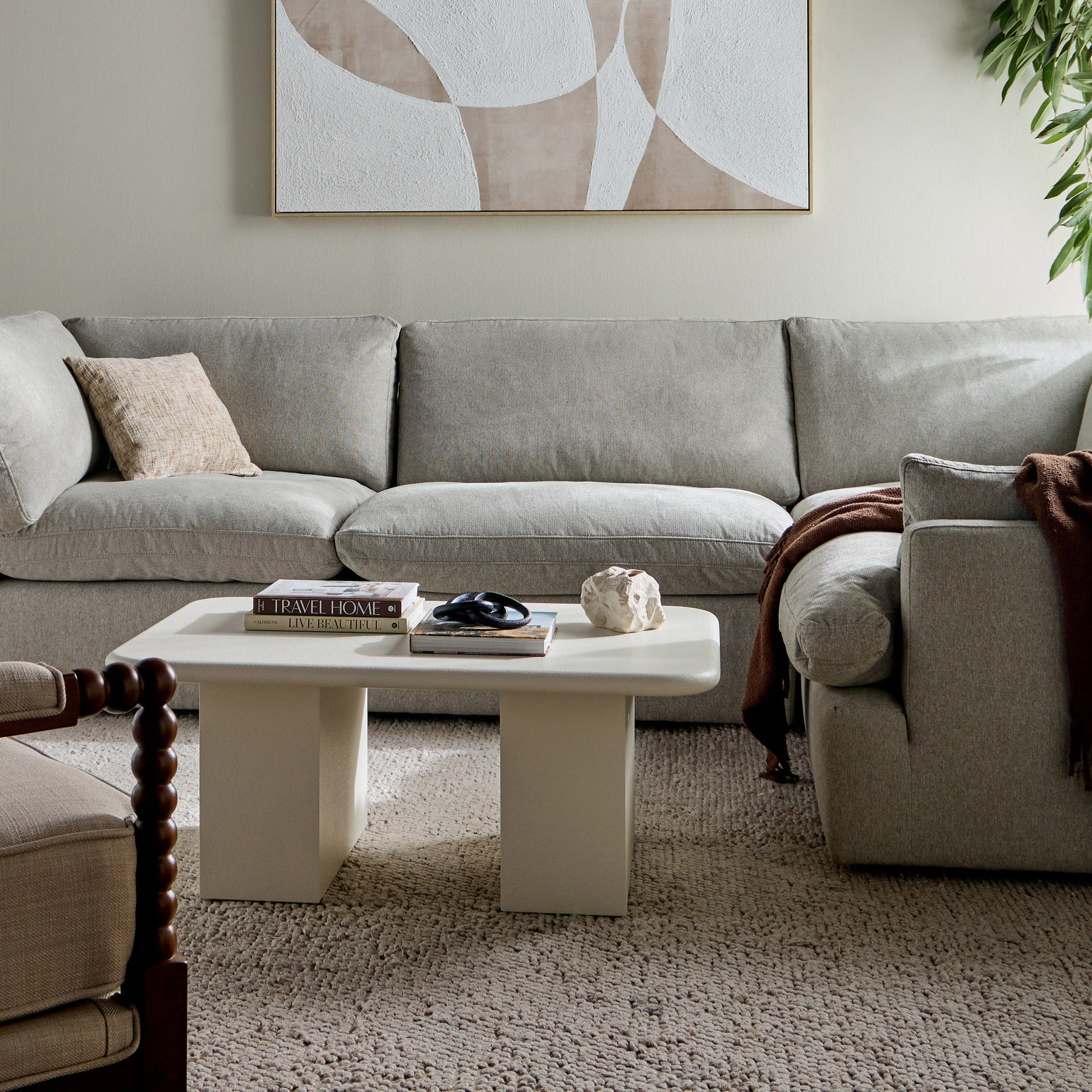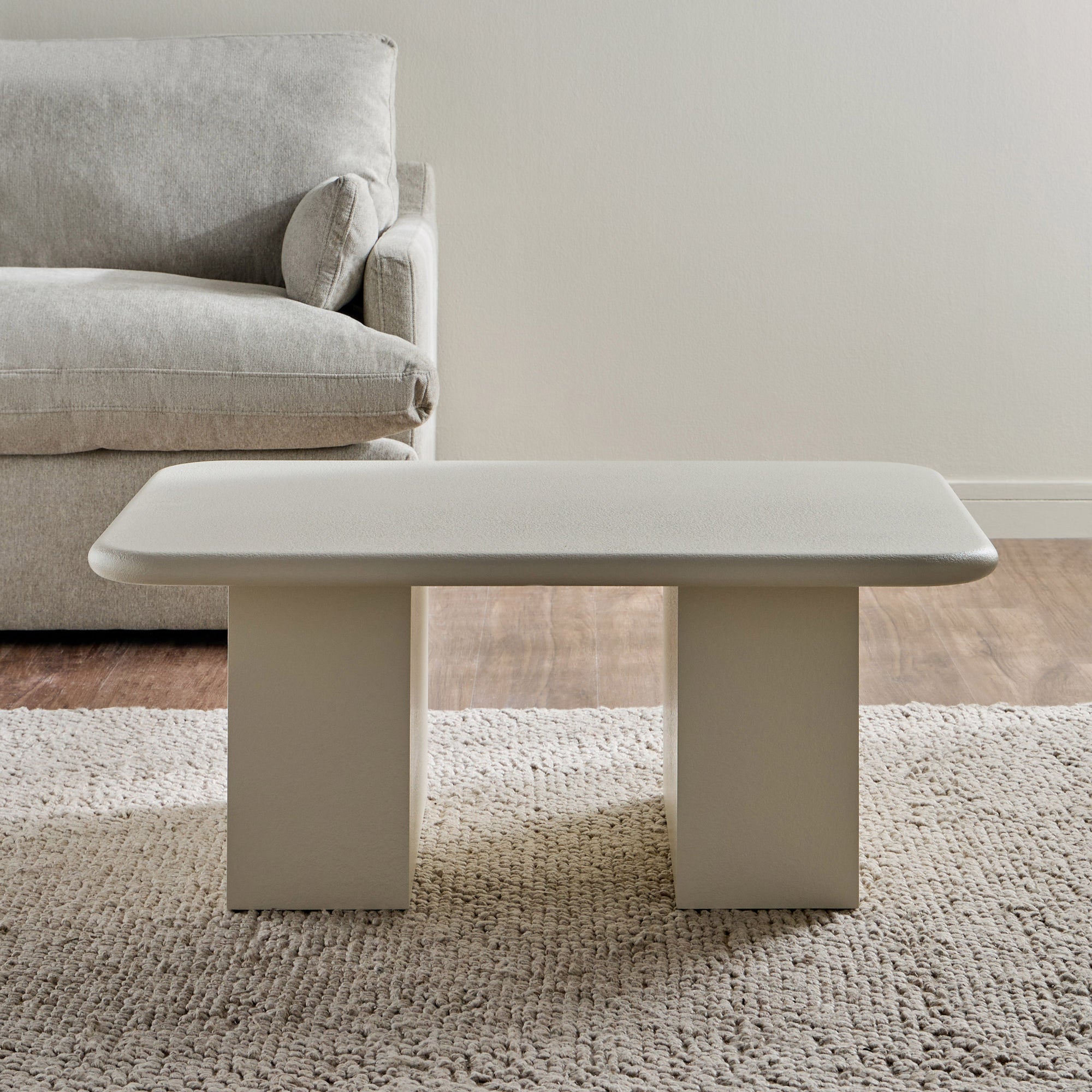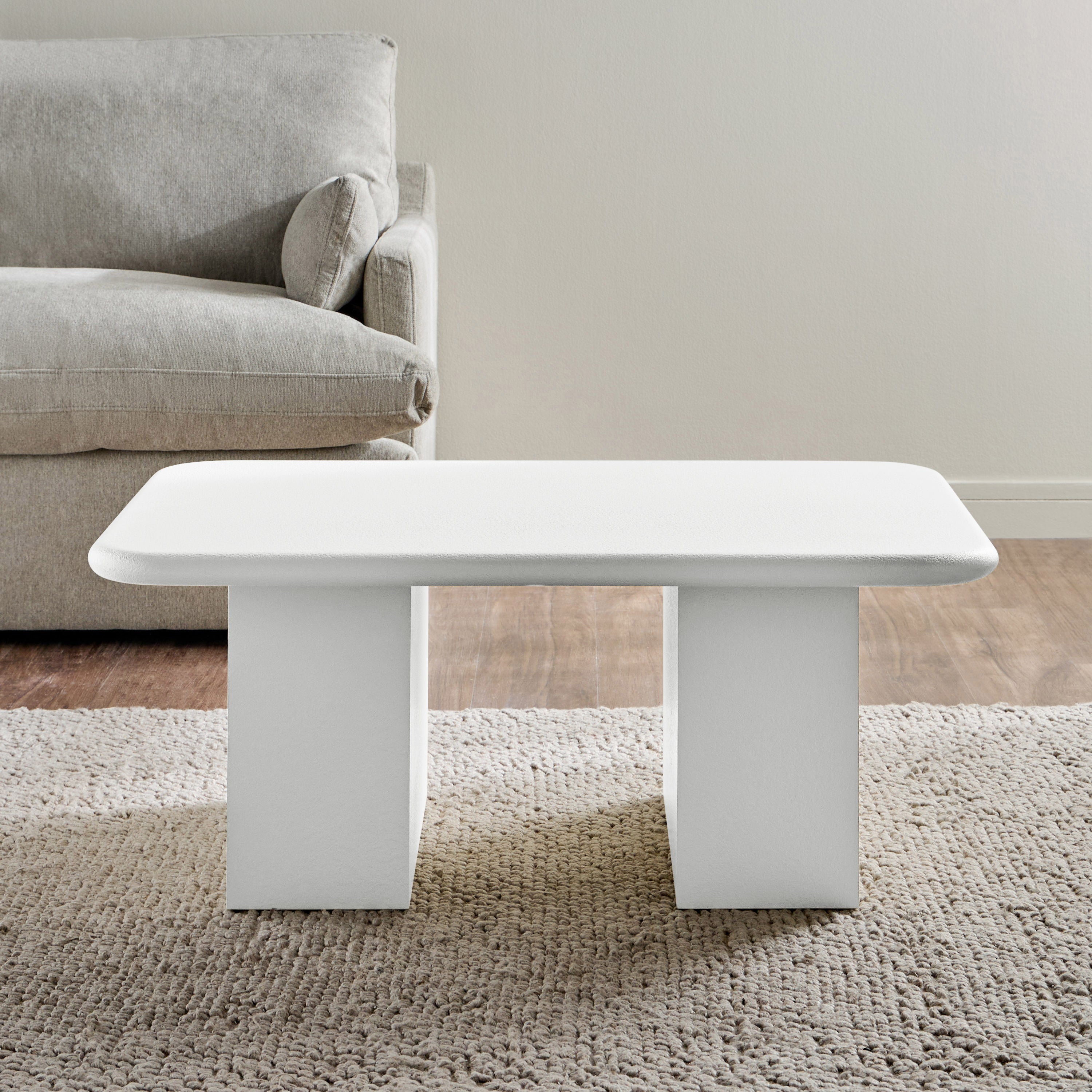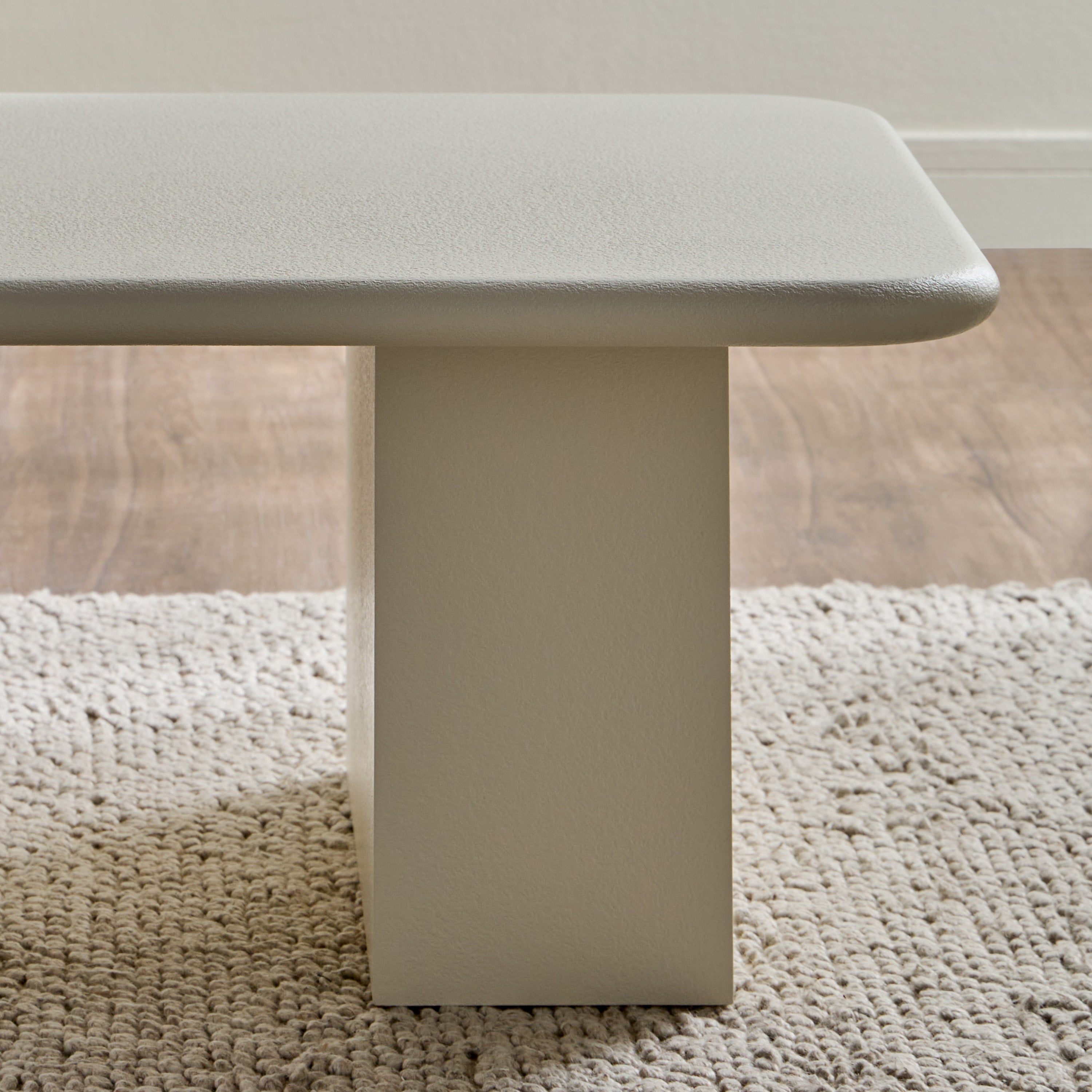 Experience the harmony of structure and style with this coffee table. Featuring a bold, architectural design with clean lines and a sturdy dual-pillar base, this piece blends modern minimalism with timeless elegance. The spacious, subtly textured tabletop provides ample room for decor and everyday essentials, making it functional and sophisticated. Crafted from high-quality, durable material, this coffee table ensures longevity while effortlessly enhancing contemporary living spaces.