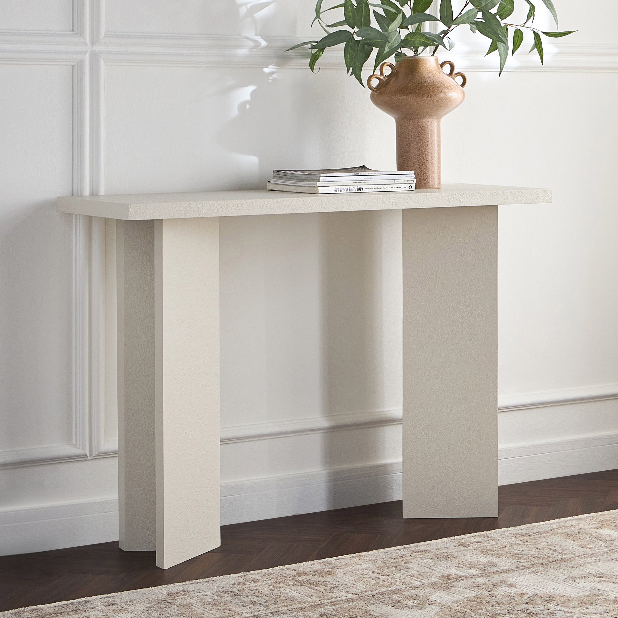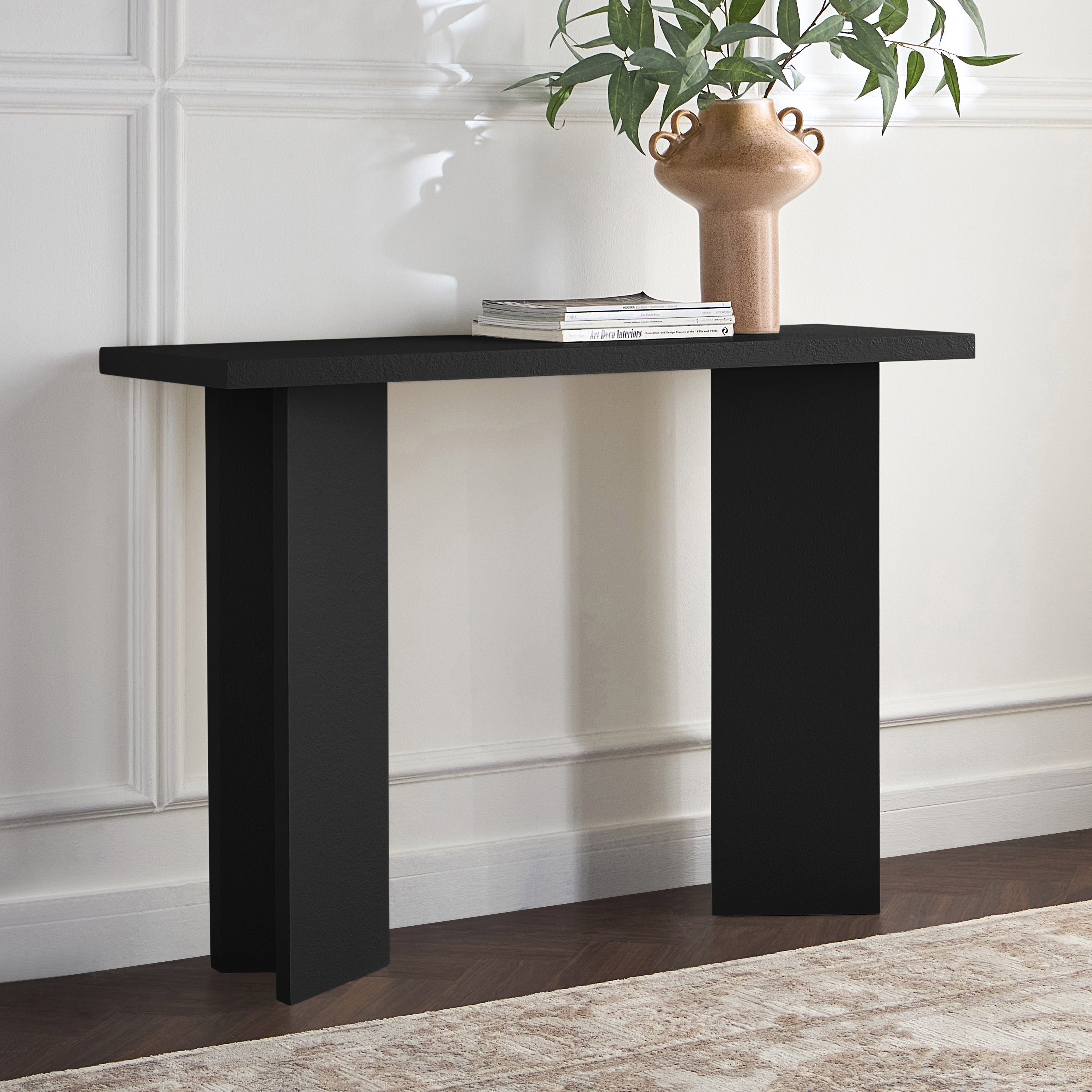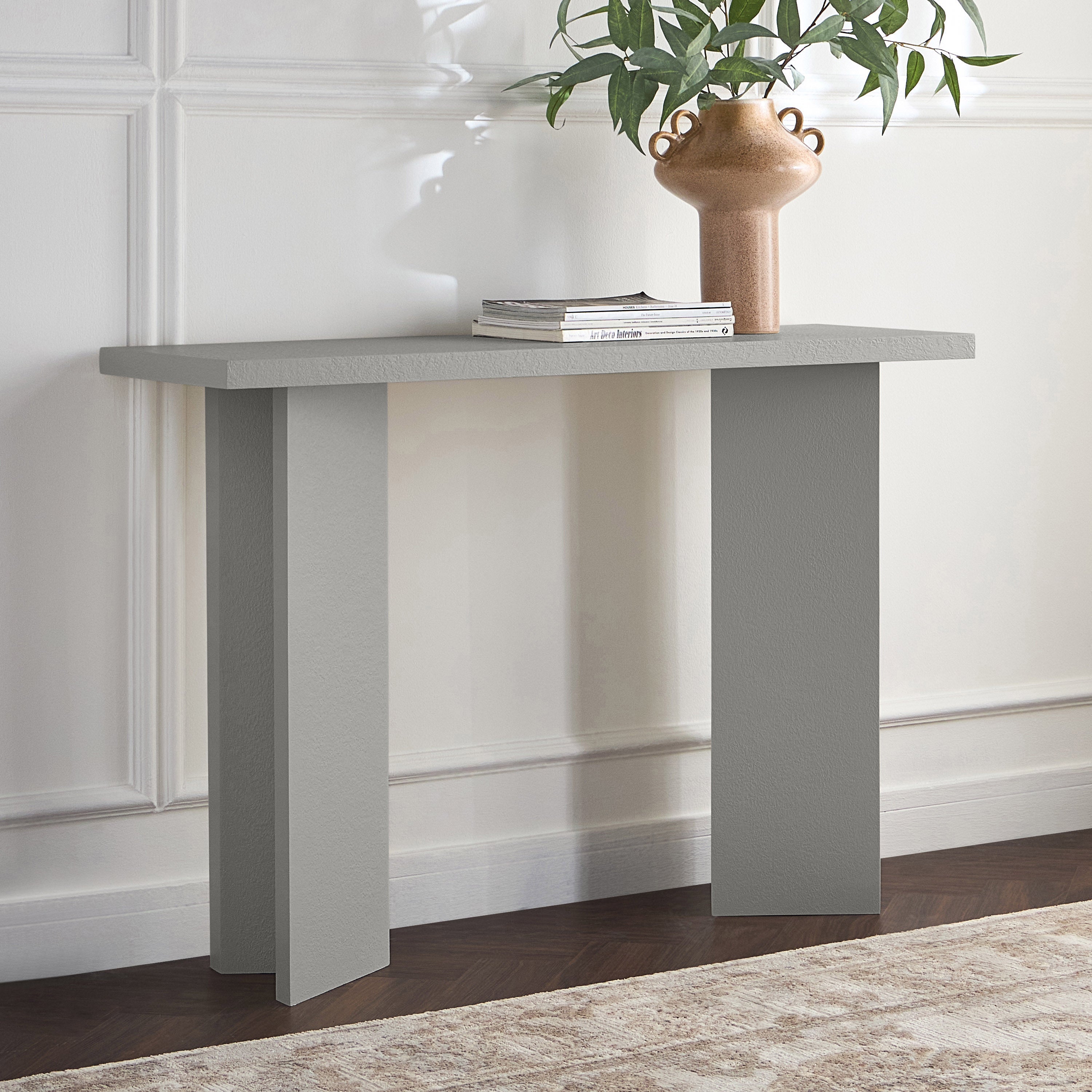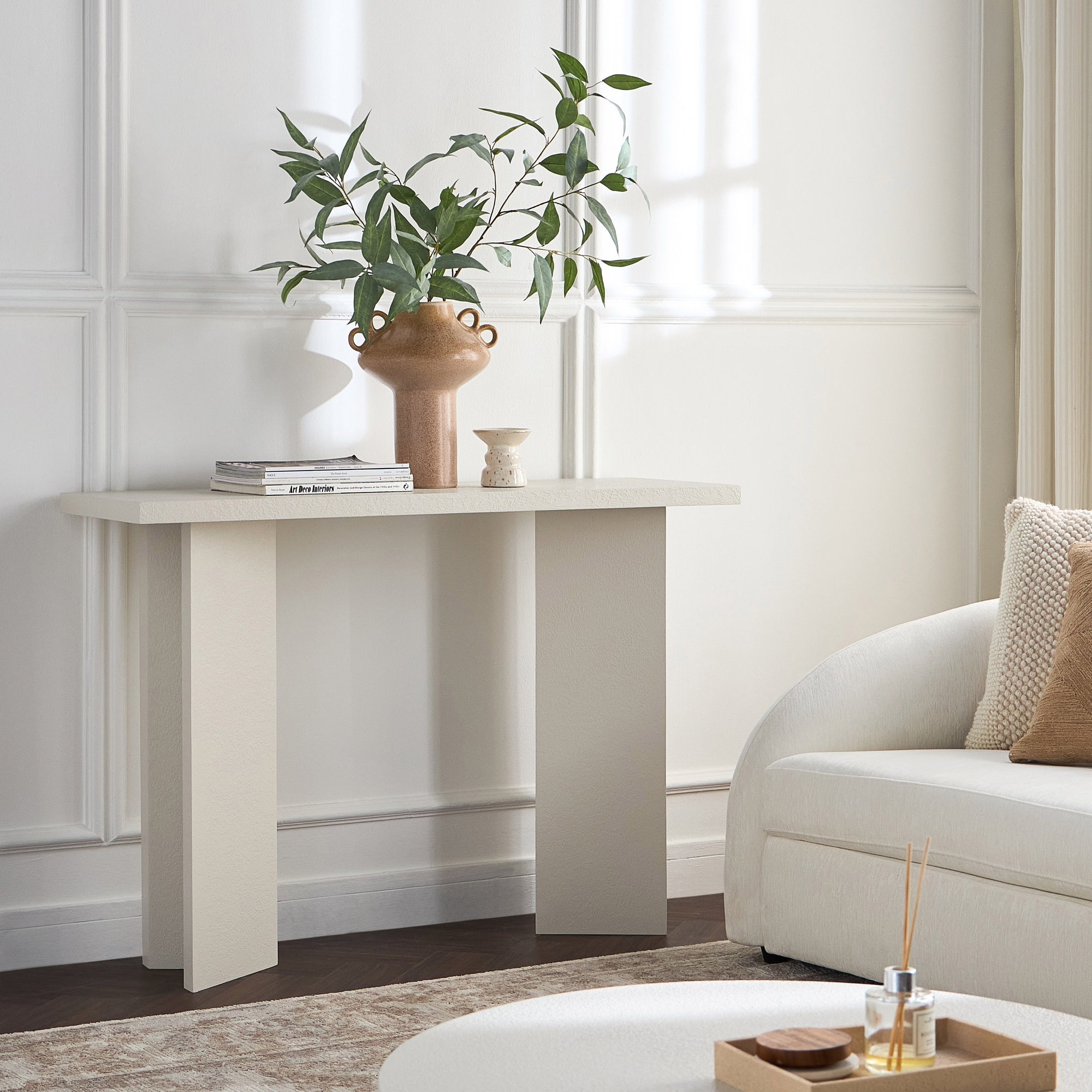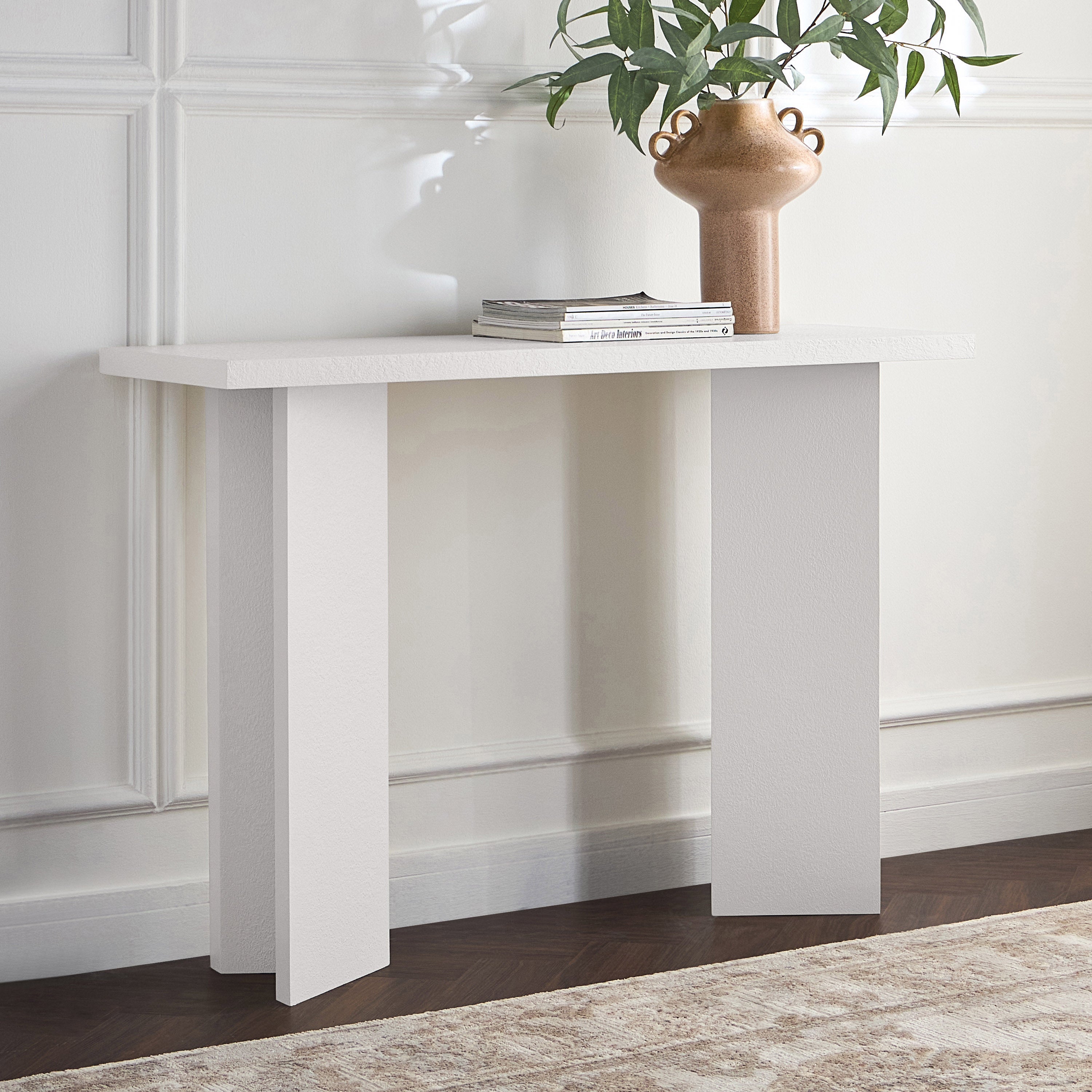 This console table is a stylish addition to any home, featuring a sleek and versatile design that complements any room. Crafted from high-quality material, it boasts a textured finish for a touch of elegance. The sturdy legs provide stability, making it ideal for displaying decor or holding essentials in your hallway or living room.